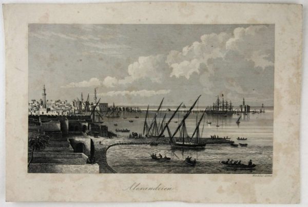 - Beschreibung: B. Winkles, Alexandrien, Stahlstich, um 1840. Beschreibung:Stahlstich von B. Winkles, bezeichnet: “Winkles direx. Alexandrien”. Sehr beeindruckende Ansicht Alexandrias mit Hafen. B. Winkles war britischer Stahl- und Architekturstecher. Um 1828-1842 in London aktiv.
