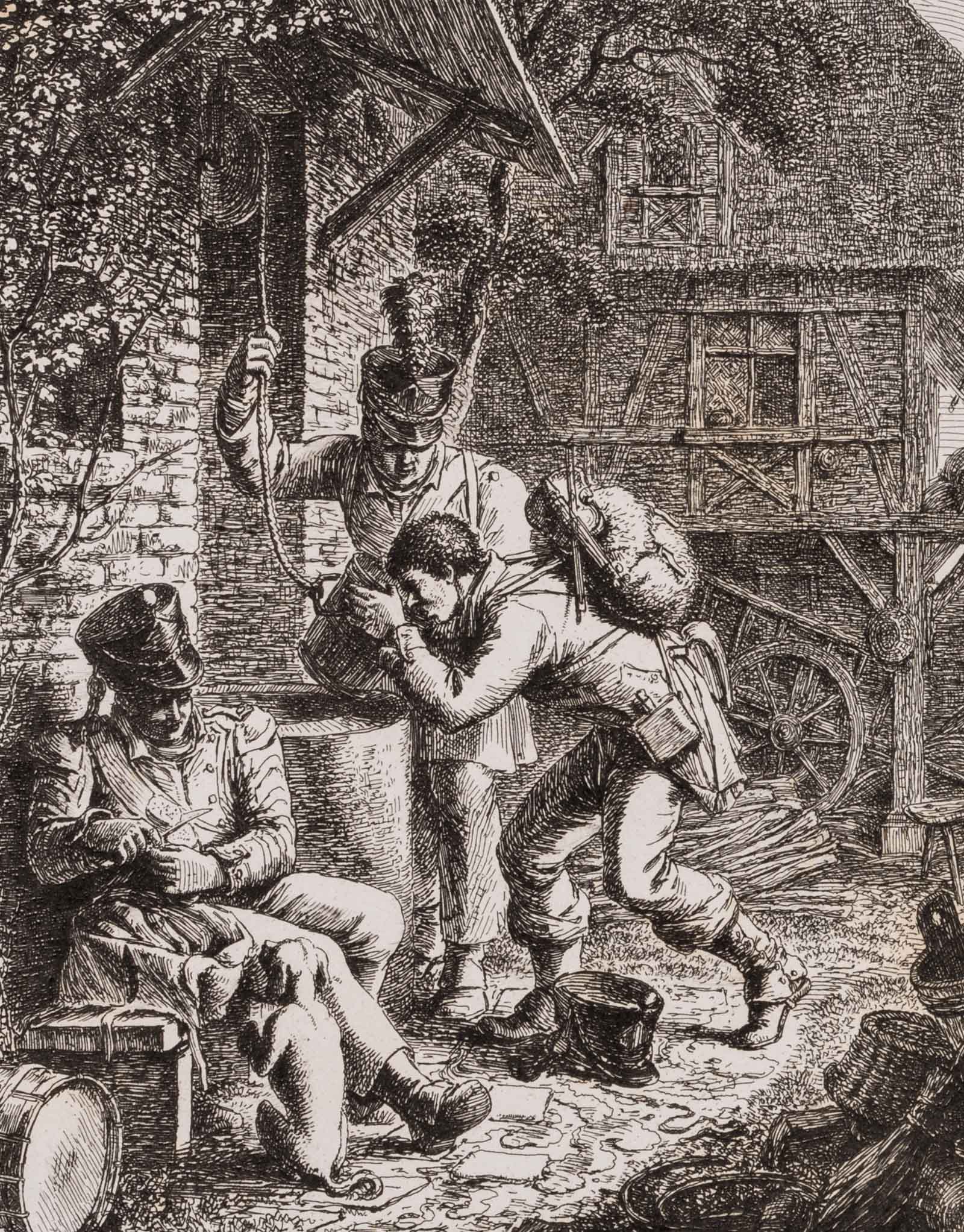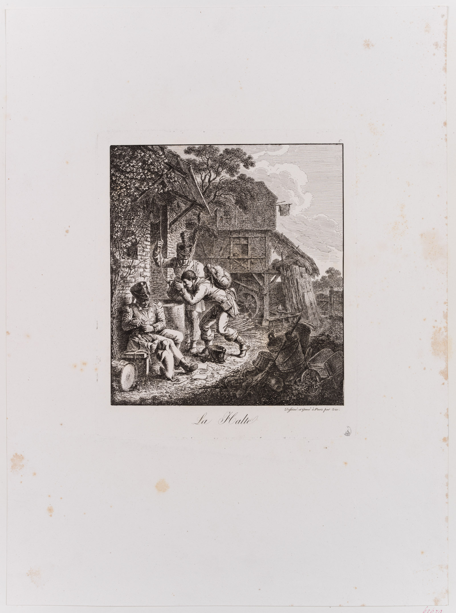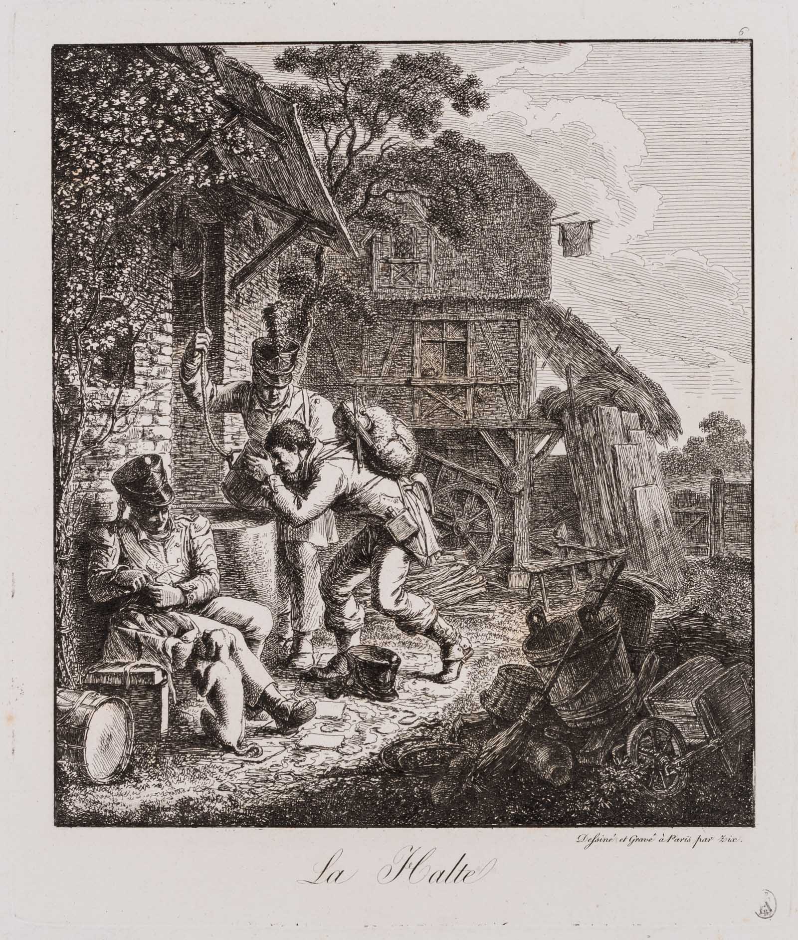 Benjamin Zix (1772 Straßburg – 1811 Perugia), Marschpause, Rastende Soldaten, Napoleonische Kriege, um 1810, Radierung