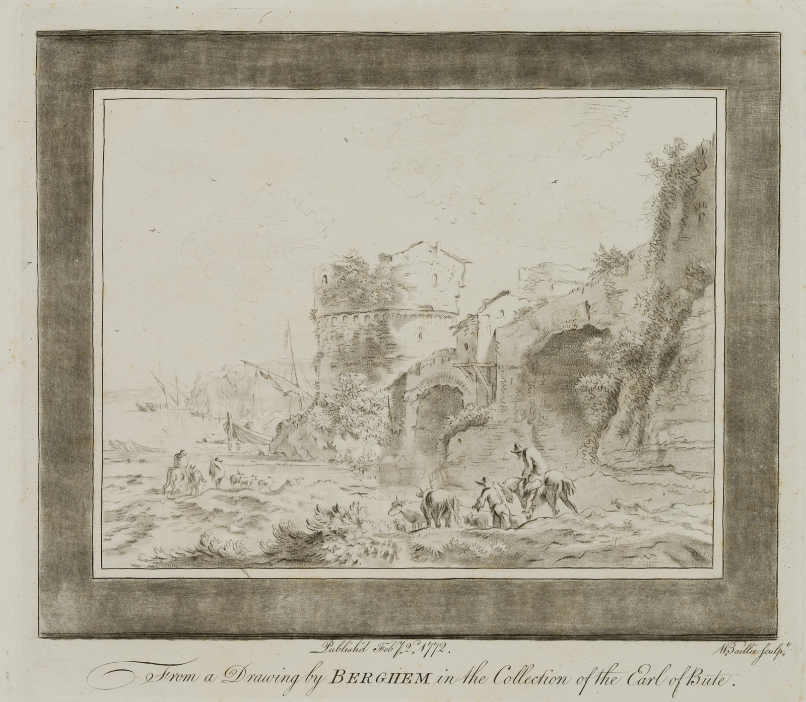 - Inscription: Inscribed below the image: “From a Drawing by BERGHEM in the Collection of the Earl of Bute / Publish’d Feby. 2d. 1772 / WBaillie Sculpt.