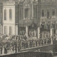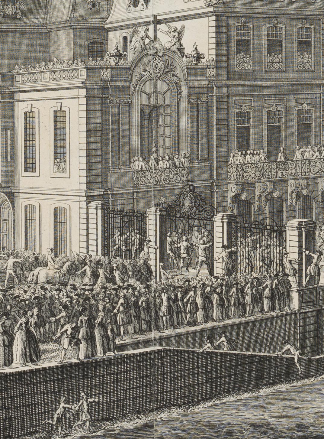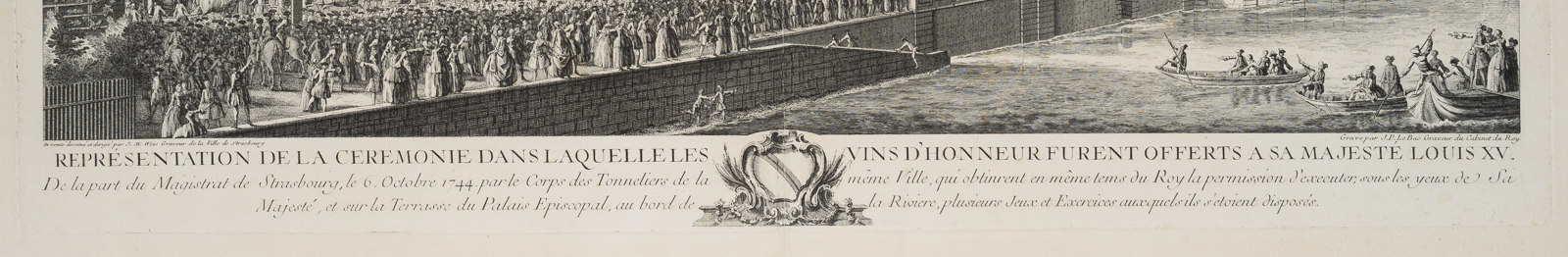 Jacques-Philippe le Bas (1707 Paris – 1783 ibid.) after Johann Martin Weis (1711 Strasbourg – 1751 ibid.), Feierlichkeiten zu Ehren Louis XV in Strasburg, “Representation of the ceremony in which the wines of honour were offered to his Majesty Louis XV by the Magistrate of Strasbourg”, 1744, Copper engraving