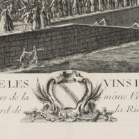 - Inscription: At the lower part signed in the printing plate: “Inventé dessiné et dirigé par J.M. Weis Graveur de la Ville de Strasbourg | Gravé par J. P. Le Bas Graveur du Cabinet du Roy.”. At the lower part inscribed in the printing plate: “Représentation de la cérémonie dans laquelle les vins d’honneur furent offerts à sa Majesté Louis XV de la part du Magistrat de Strasbourg”.