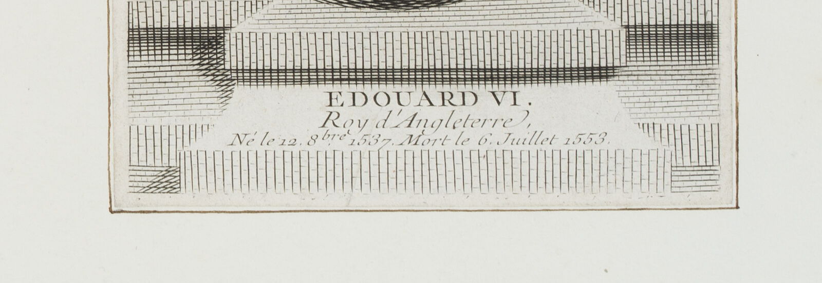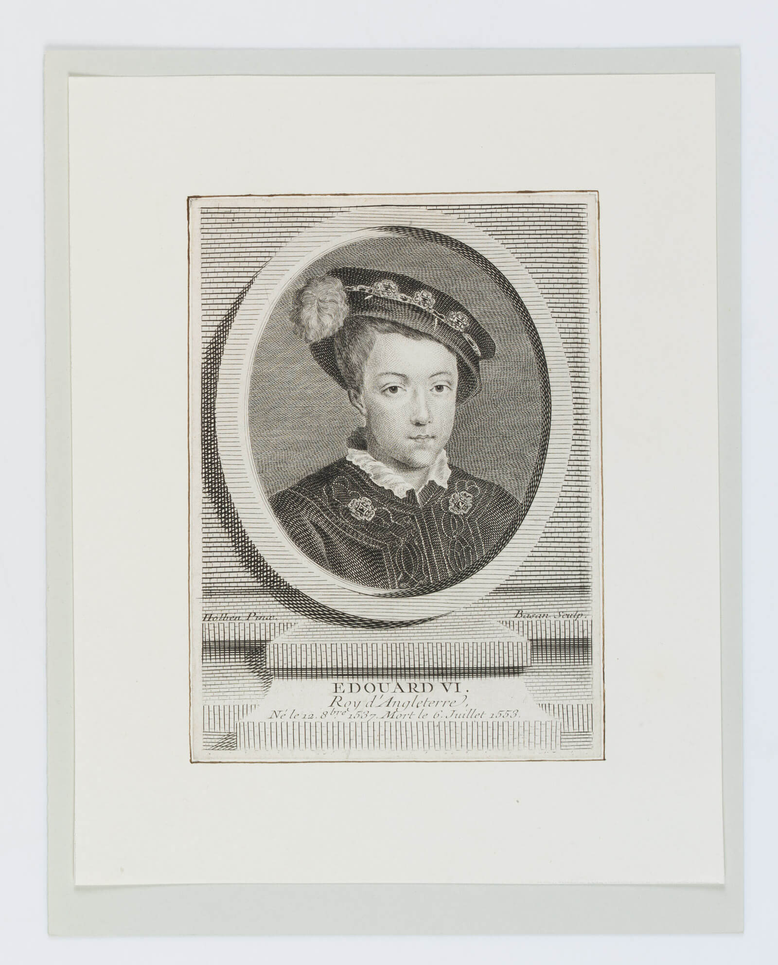 Pierre Francois Basan (1723 Paris – 1797 ibid.) after Hans Holbein jun. (1498 Augsburg – 1543 London), Portrait of Edouard VI, c. 1770, Copper engraving