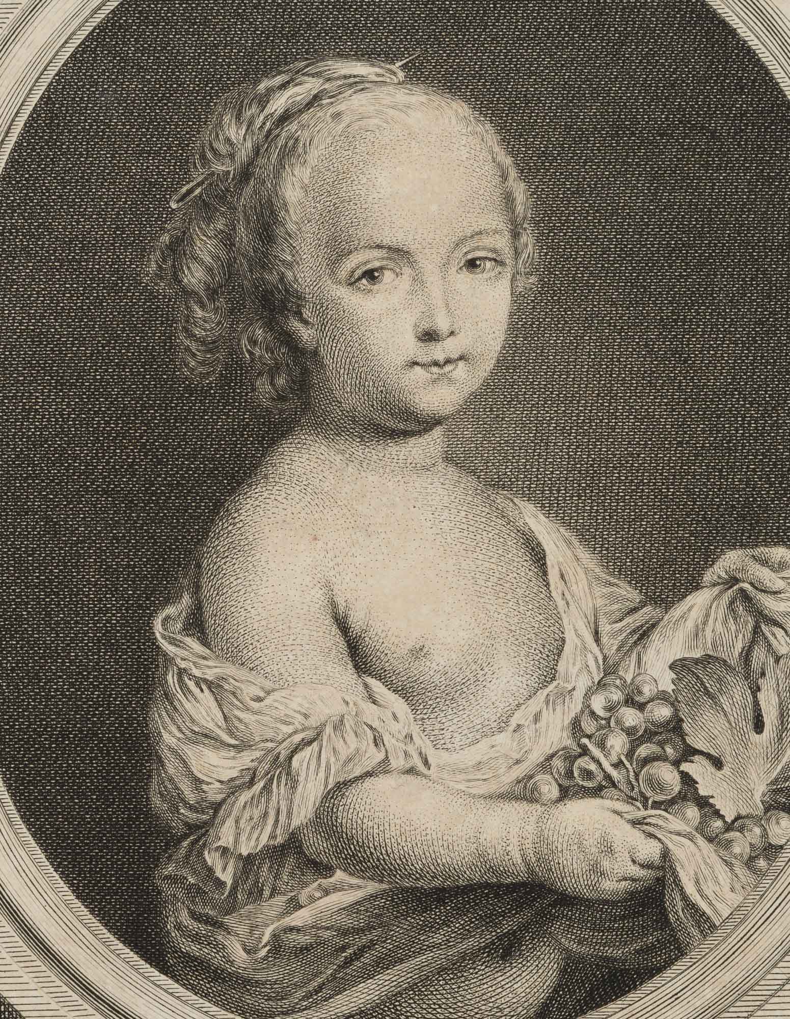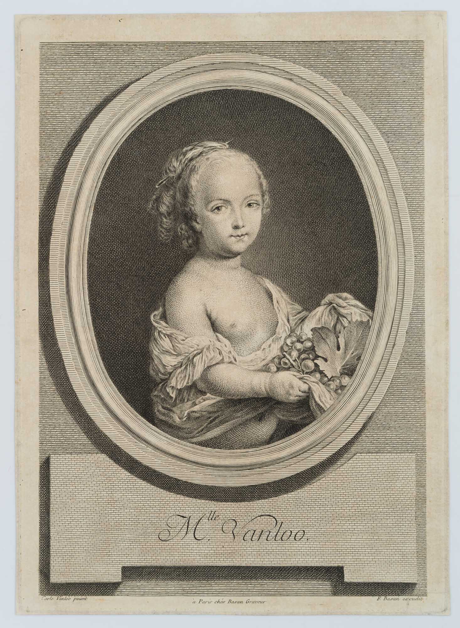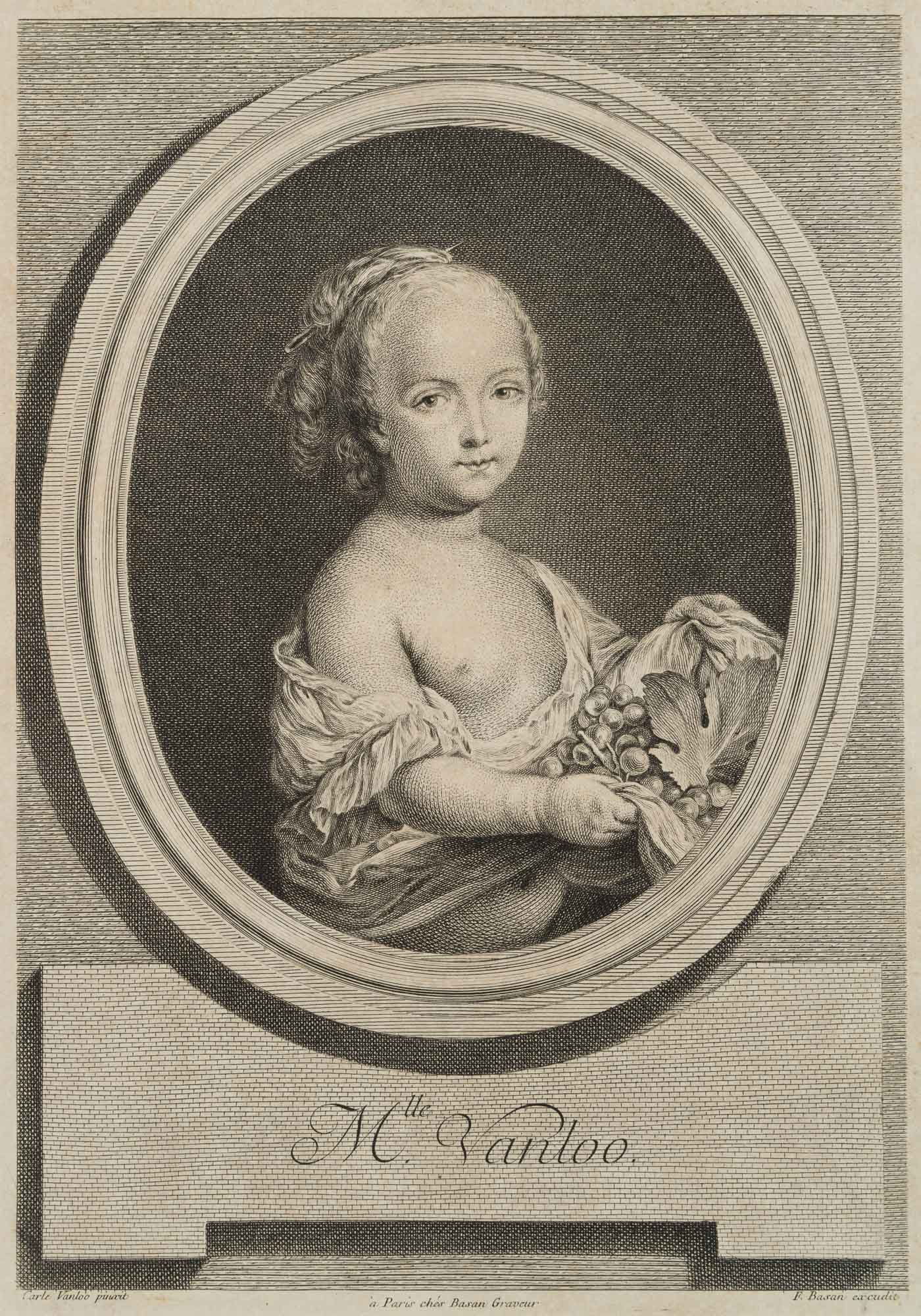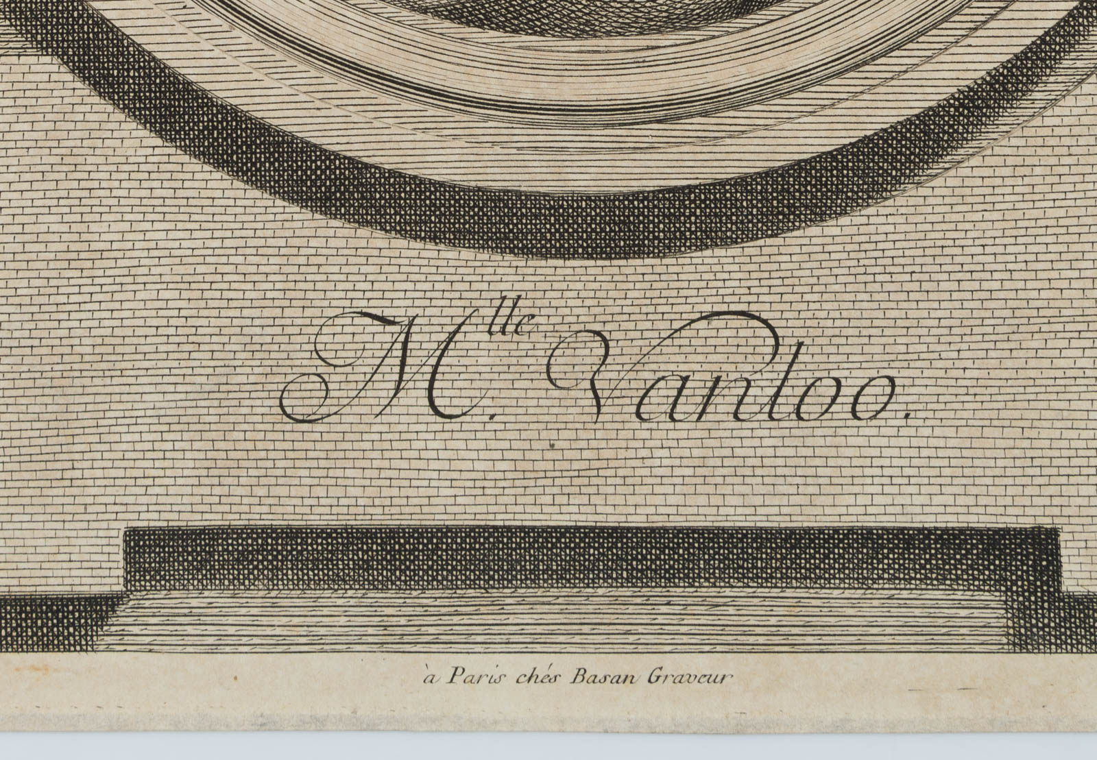 Pierre Francois Basan (1723 Paris – 1797 ibid.) after Charles André van Loo (1705 Nice – 1765 Paris), Miss Vanloo’. Portrait der Marie-Rosalie VANLOO (1737 vermutl. Paris – 1762 ebd.), 18th century, Copper engraving