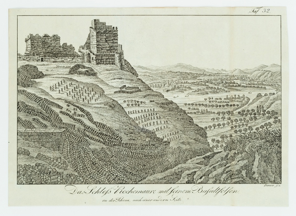 Bauer (19. Jahrhundert), Ansicht vom Schloss Rochemaure an der Rhone, 19. Jahrhundert, Lithographie