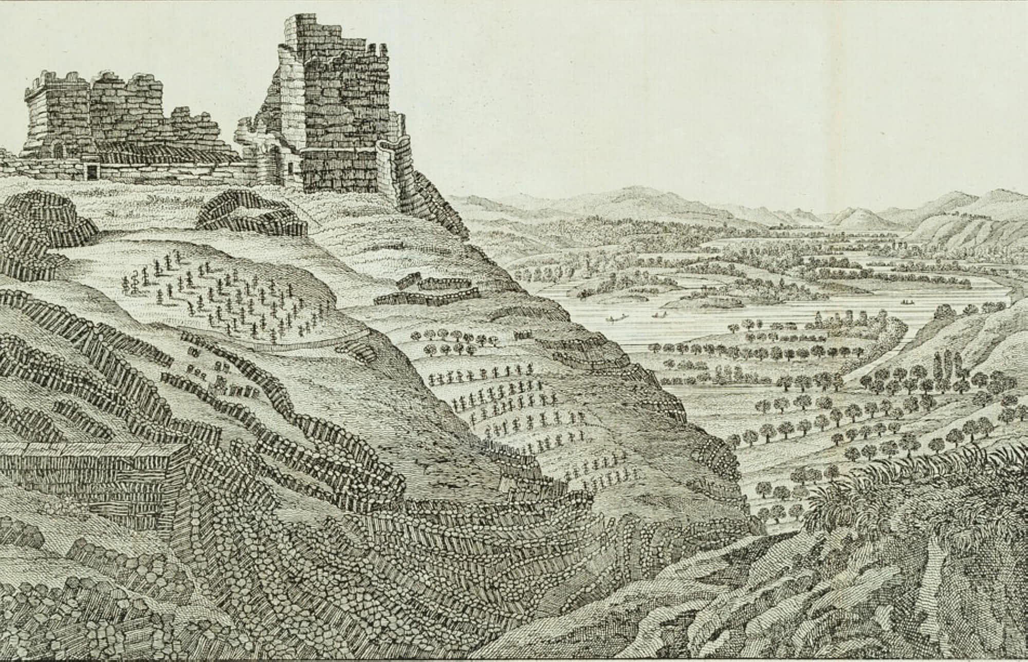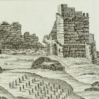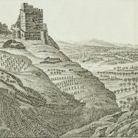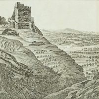 Bauer (19th century), View of Rochemaure Castle on the Rhone, 19th century, Lithography