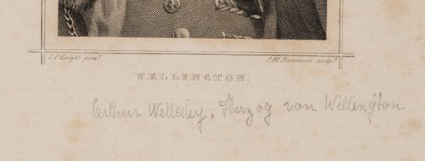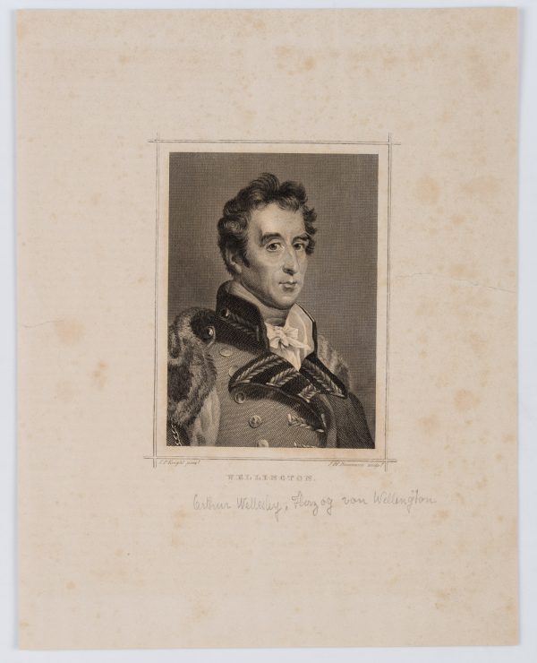 - Beschreibung: Arthur Wellesley, 1. Duke of Wellington (vermutlich 1. Mai 1769 in Dublin, Irland – 14. September 1852 in Walmer Castle bei Deal, Kent, England), war Feldmarschall und britische Militärführer der napoleonischen Zeit sowie britischer Außen- und Premierminister. Er siegte über Napoleon in der Schlacht bei Waterloo.