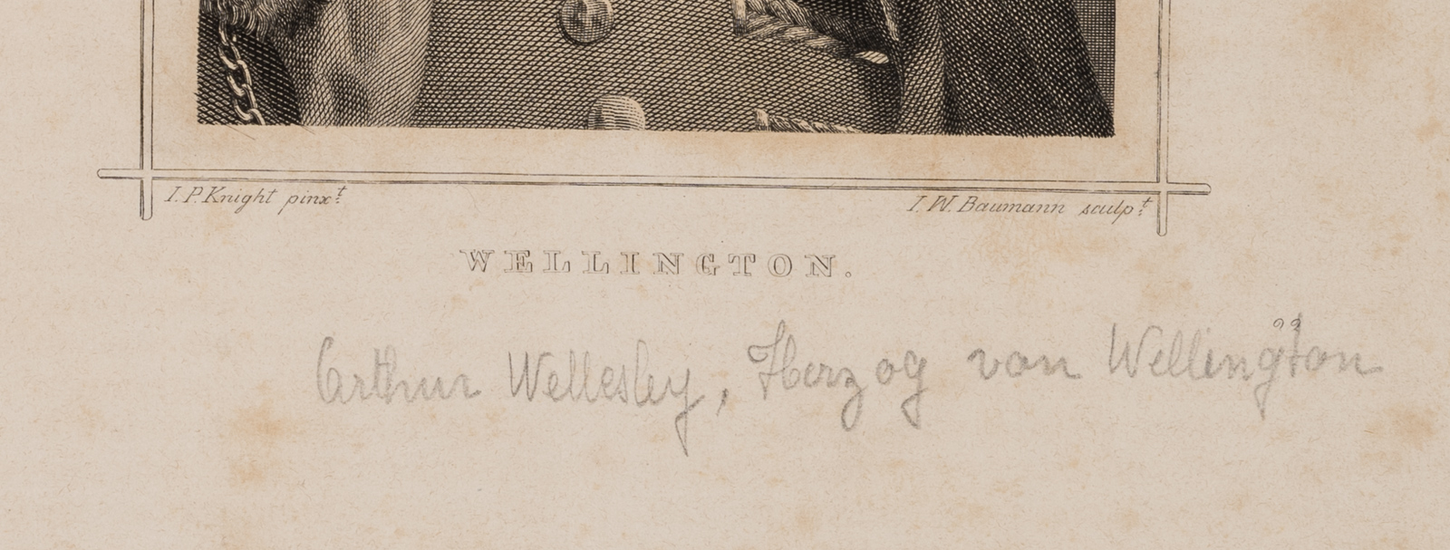 - Bezeichnung: Links unterhalb der Graphik beschriftet mit “I. P. Knight pinx” und rechts mit “I. W. Baumann sculp”, darunter mit dem Namen des Dargestellten beschriftet.