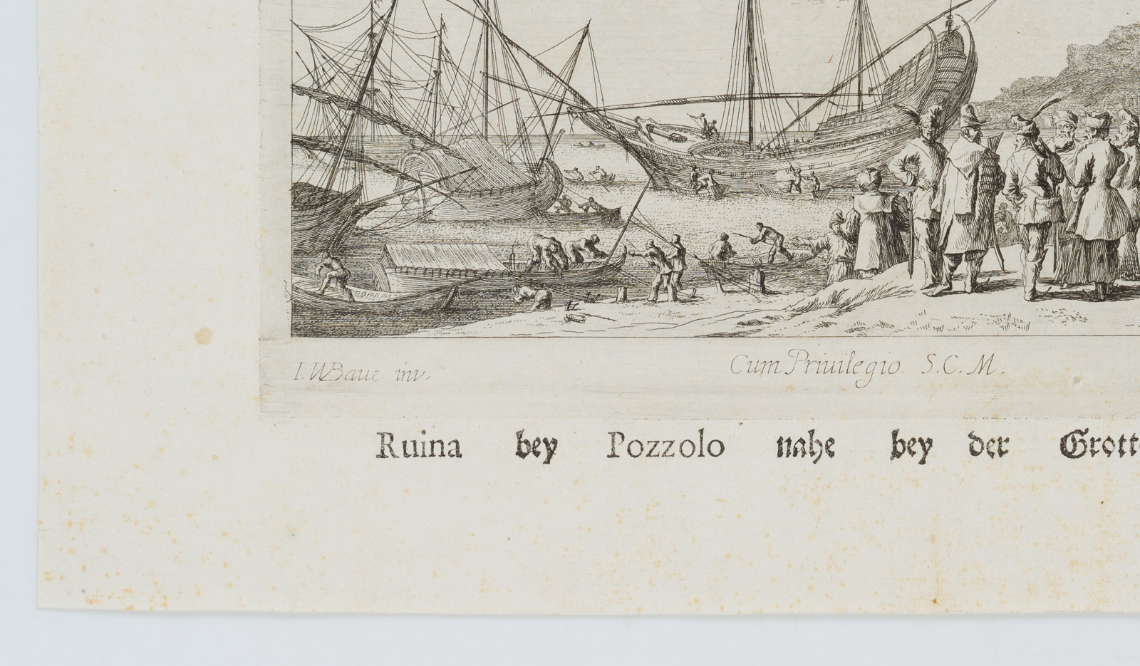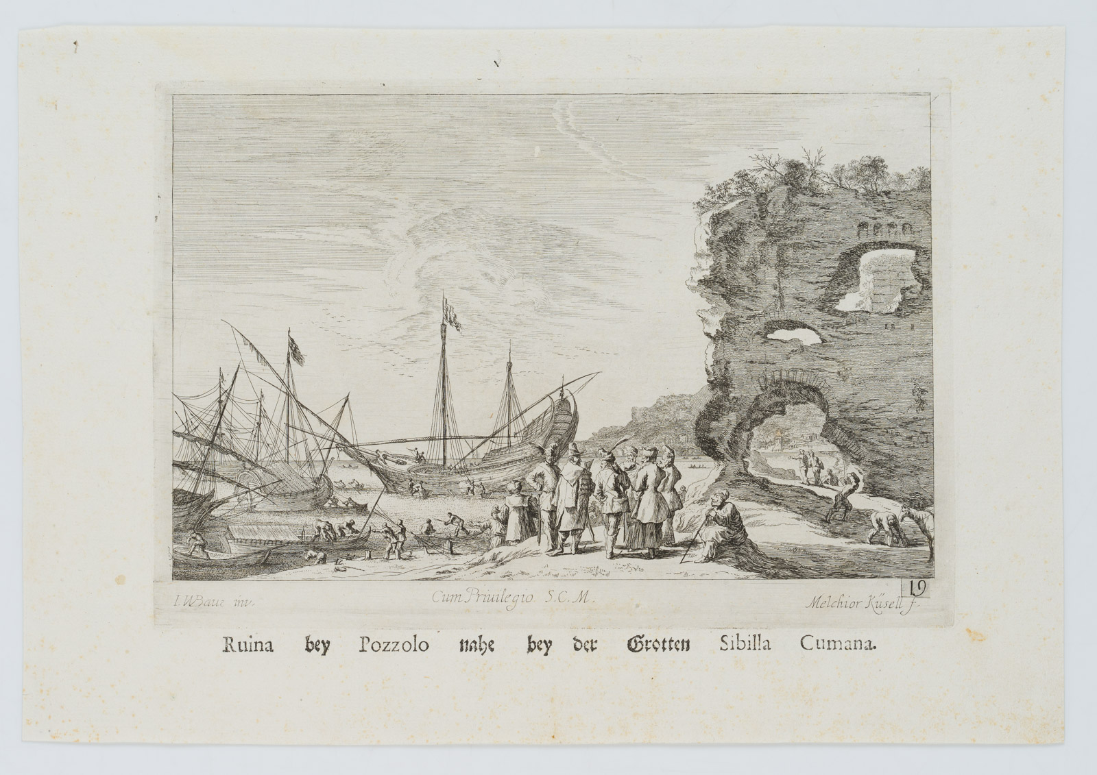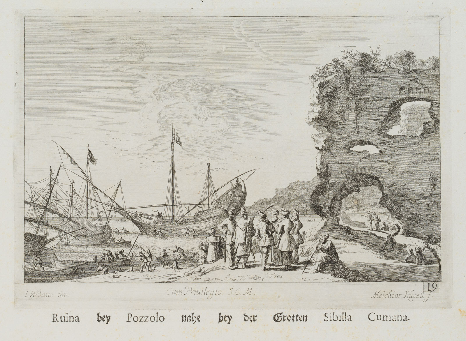 Johann Wilhelm Baur (1607 Strasbourg – 1640 Vienna) after Melchior Küsell (1626 Augsburg – 1683 ibid.), Ruine bey Pozzolo bey der Grotten Sibilla Cumana, 18th century, Copper engraving