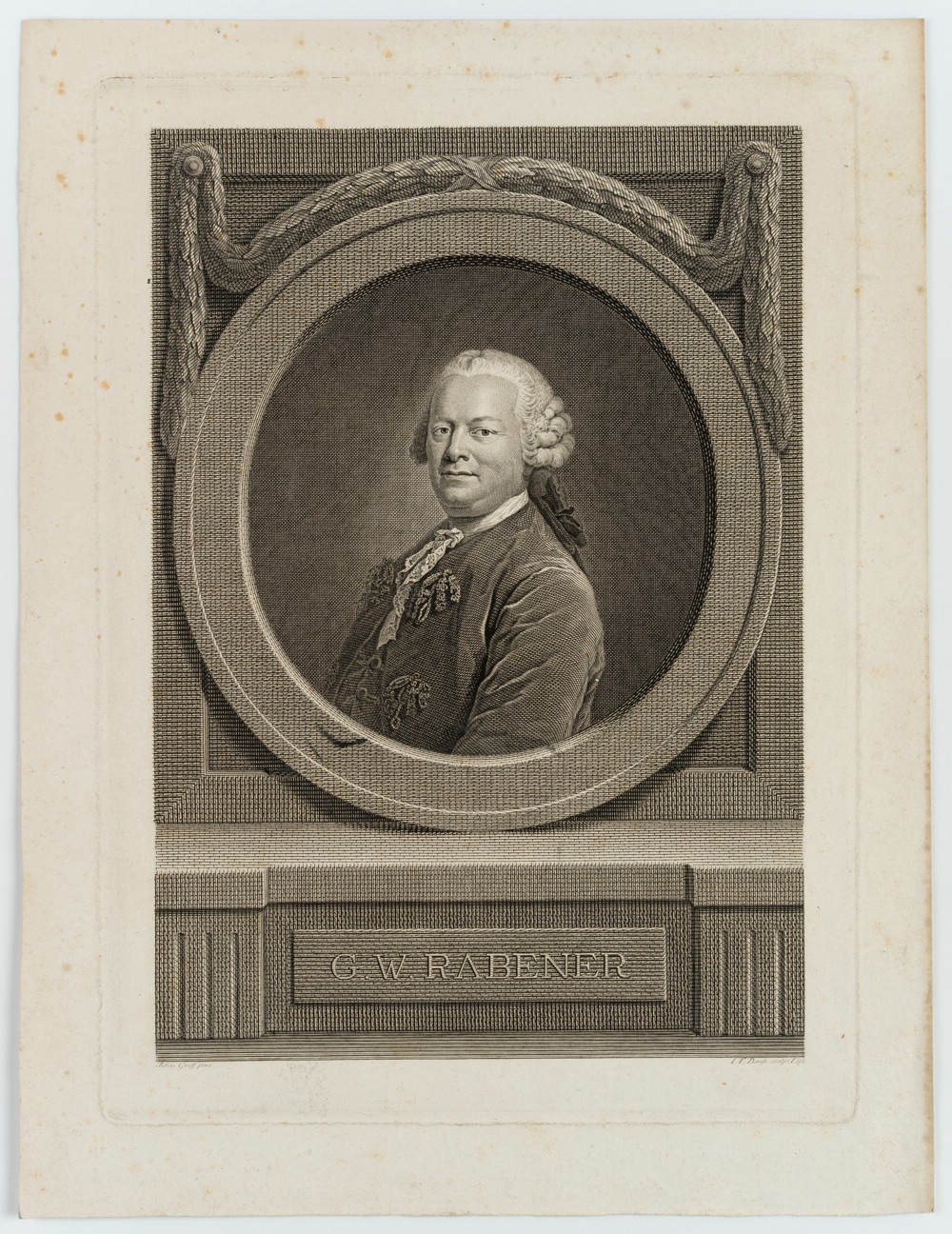 Johann Friedrich Bause (1738 Halle (Saale) – 1814 Weimar) after Anton Graff (1736 Winterthur – 1813 Dresden), Portrait of the German writer of the Enlightenment Gottlieb Wilhelm Rabener (1714-1771), 18th century, Copper engraving