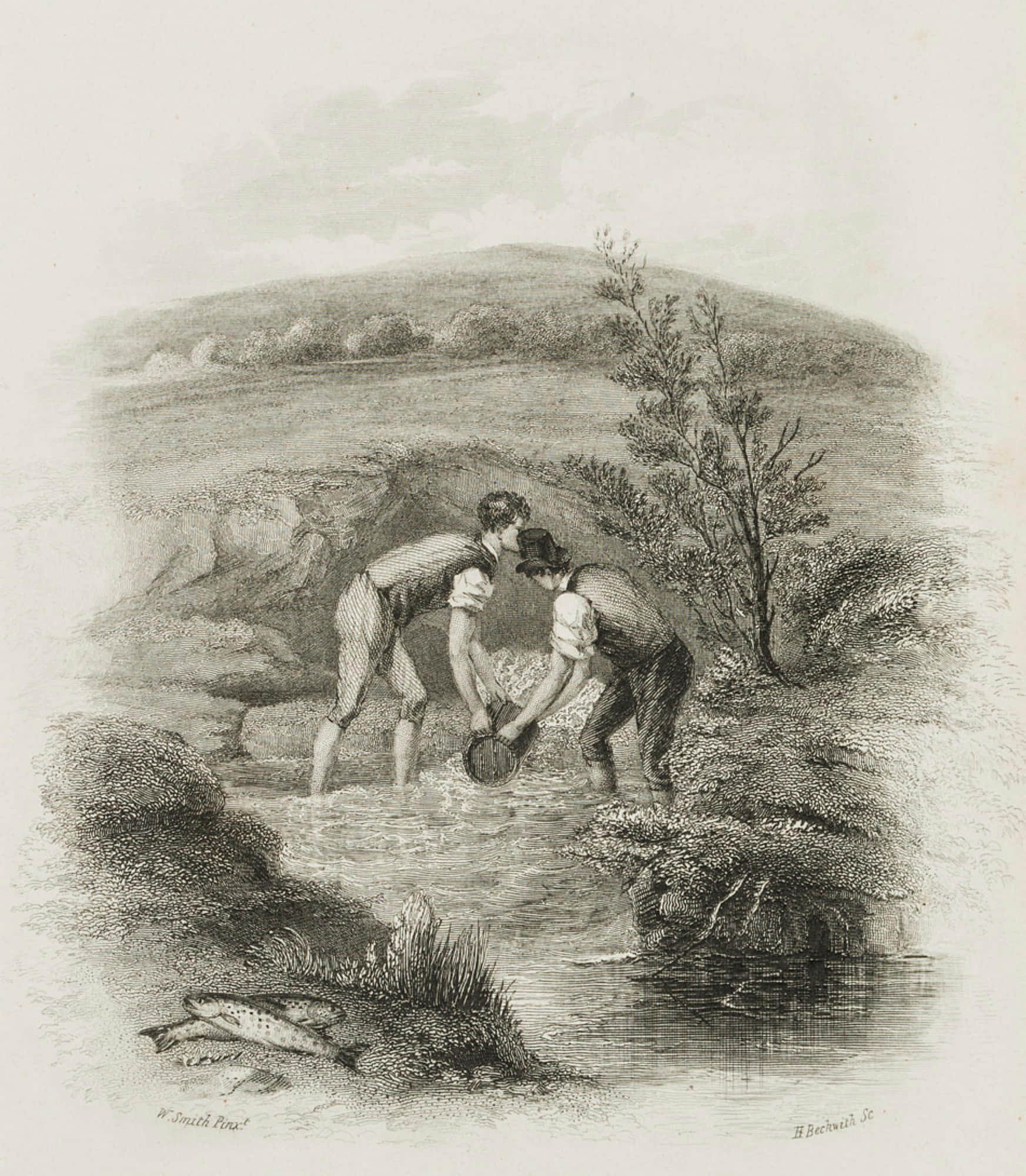 Beckwith (19. Jahrhundert), Einen Bach ausschöpfen, 19. Jahrhundert, Stahlstich