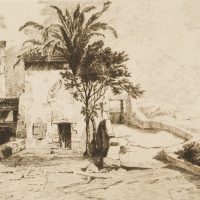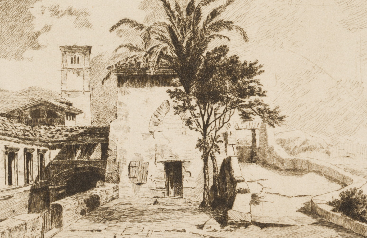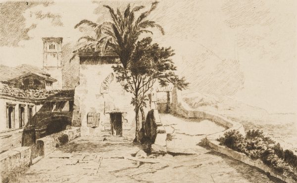 W. Begas (19th century) after Bernhard Mannfeld (1848 Dresden – 1925 Frankfurt on the Main), Mediterranean city on the coast, 1904, Etching