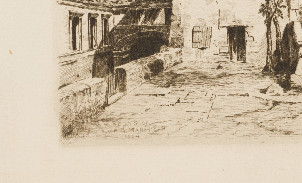 - Inscription: lower left signed in the printing plate: “W Begas sc. | nach B Mannfeld 1904”.