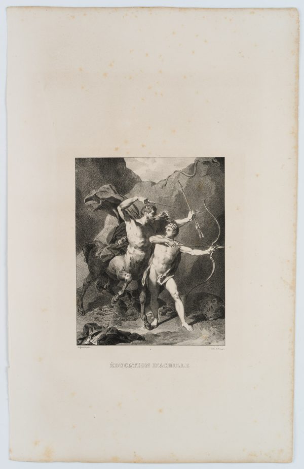 Benard (19th century) after Jean-Baptiste Regnault (1754 Paris – 1829 ibid.), “Education d’Achille” in German: “Achills Erziehung”., 19th century, Lithography