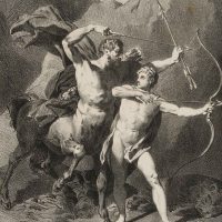 Benard (19. Jahrhundert) nach Jean-Baptiste Regnault (1754 Paris – 1829 ebd.), “Education d’Achille” zu deutsch: “Achills Erziehung”, 19. Jahrhundert, Lithographie