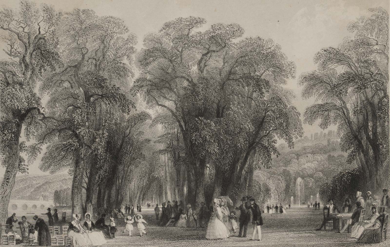 Joseph Clayton Bentley (1809 Bradford – 1851 Sydenham) after Thomas Allom (1804 London – 1872 Barnes/Surrey), View into the lively park of St Cloud, Paris, 19th century, Steel engraving