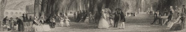 Joseph Clayton Bentley (1809 Bradford – 1851 Sydenham) nach Thomas Allom (1804 London – 1872 Barnes/Surrey), Blick in den belebten Park von St. Cloud, Paris, 19. Jahrhundert, Stahlstich