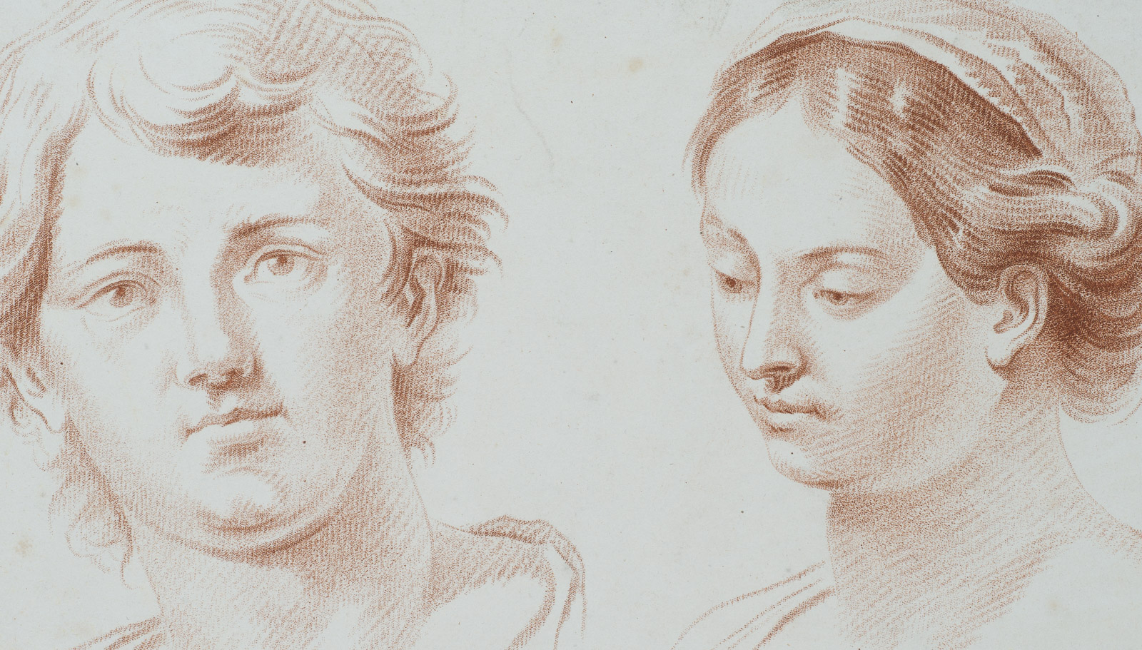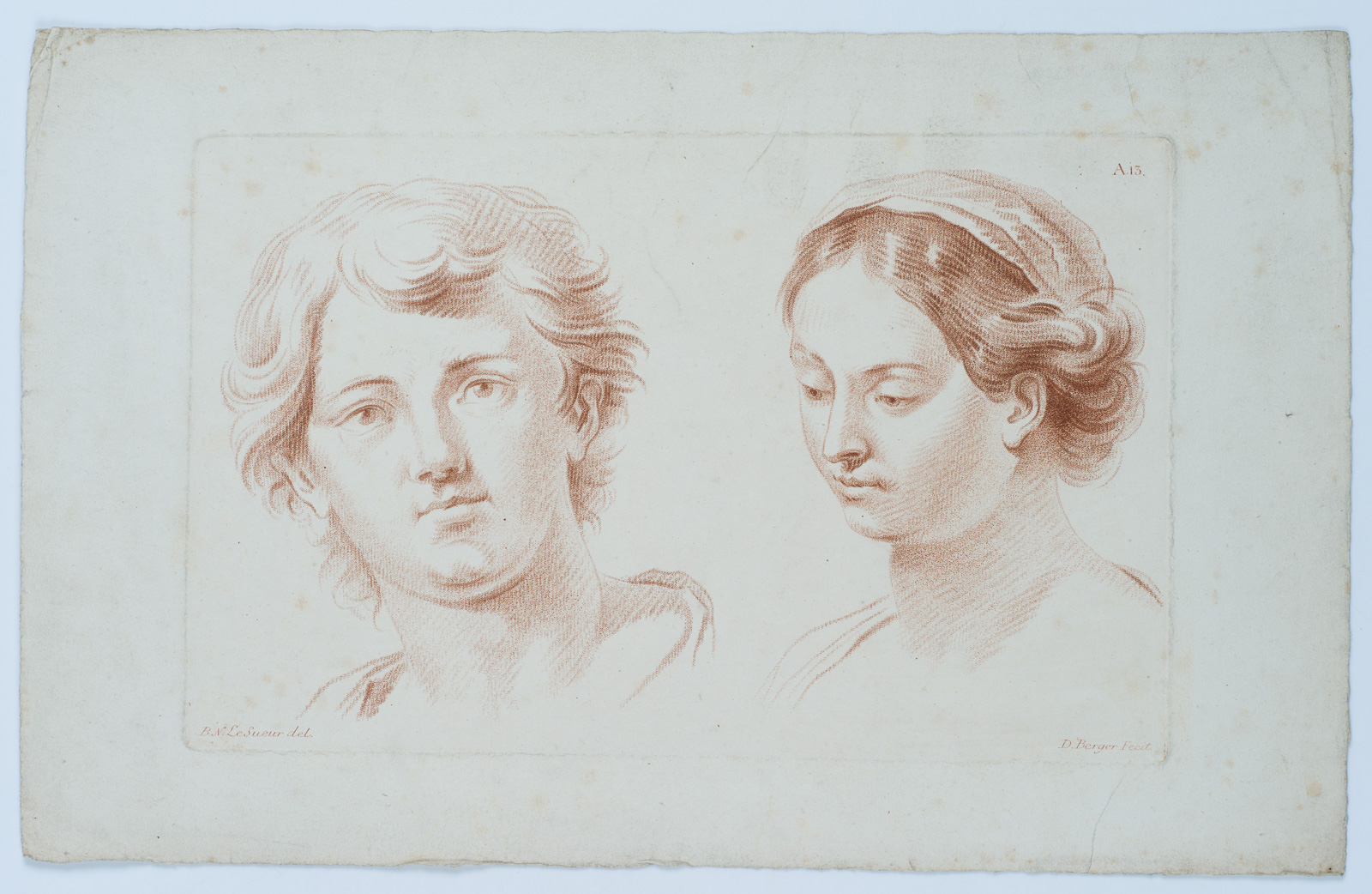 Daniel Berger (1744 Berlin – 1824 ibid.) after Nicolas le Sueur (1691 Paris – 1764 ibid.), Head studies of a young man, a young woman, 18th century, Lithography