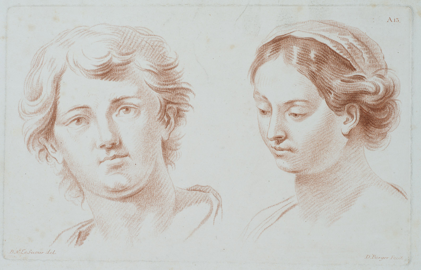 BERGER (*1744) nach SUEUR (*1691), Kopfstudien eines Mannes, einer Frau,