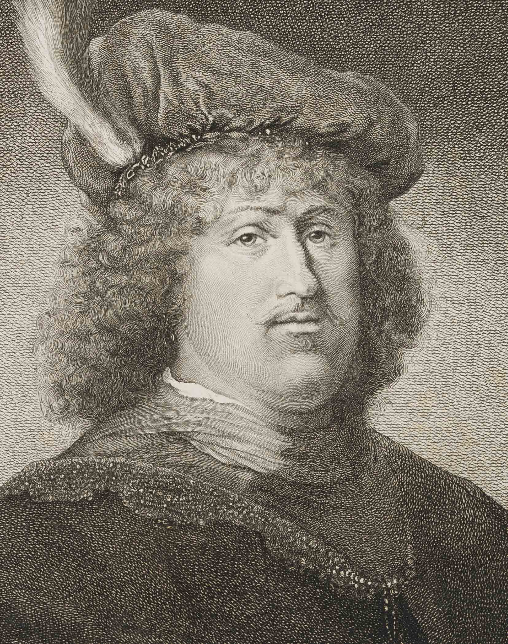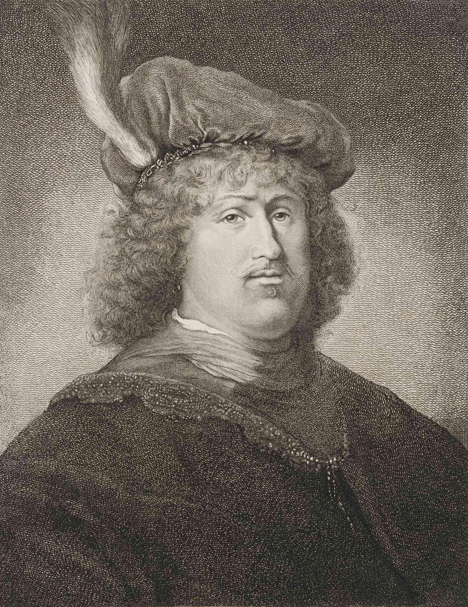 Carl Otto Berger (*1839 Leipzig) nach Rembrandt: Rembrandt Harmenszoon van Rijn (1606 Leiden – 1669 Amsterdam), Portrait eines Mannes mit Mütze und Umhang, 1857, Radierung