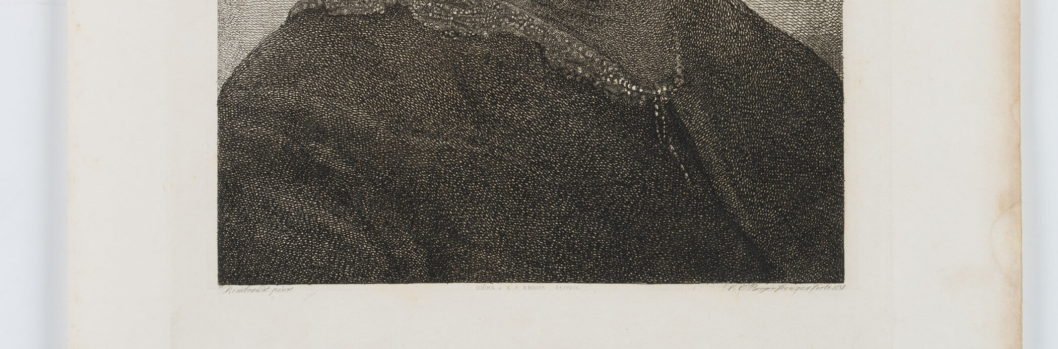 - Bezeichnung: Unten mittig im Druck signiert: “Rembrandt pinx | Druck von C A Berger Elipzig | C. O. Berger fec aquaforte 1857”.