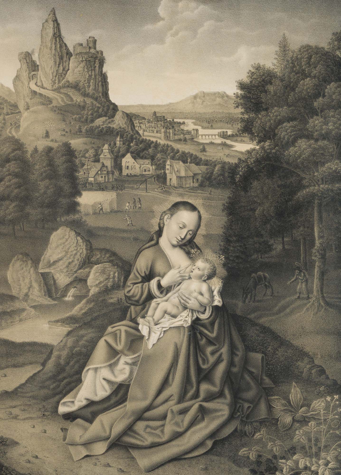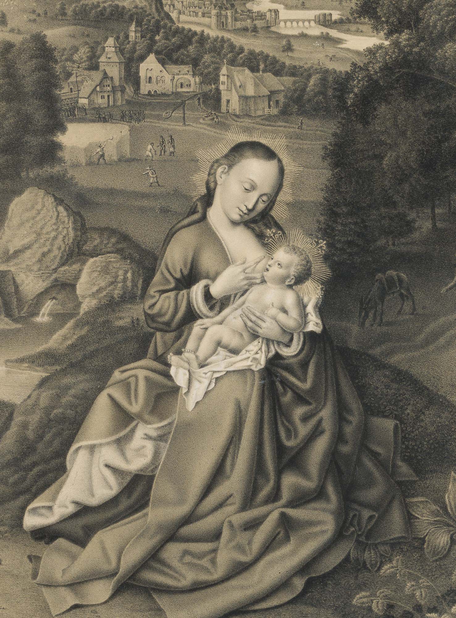 - Schlagworte: Madonna, Mariendarstellung, Maria, stillende Maria, Maria mit dem Christuskind, Josef, Esel, heilige Familie, Flucht, Religiös, Biblisches, Deutschland, Renaissance, 1800-1849