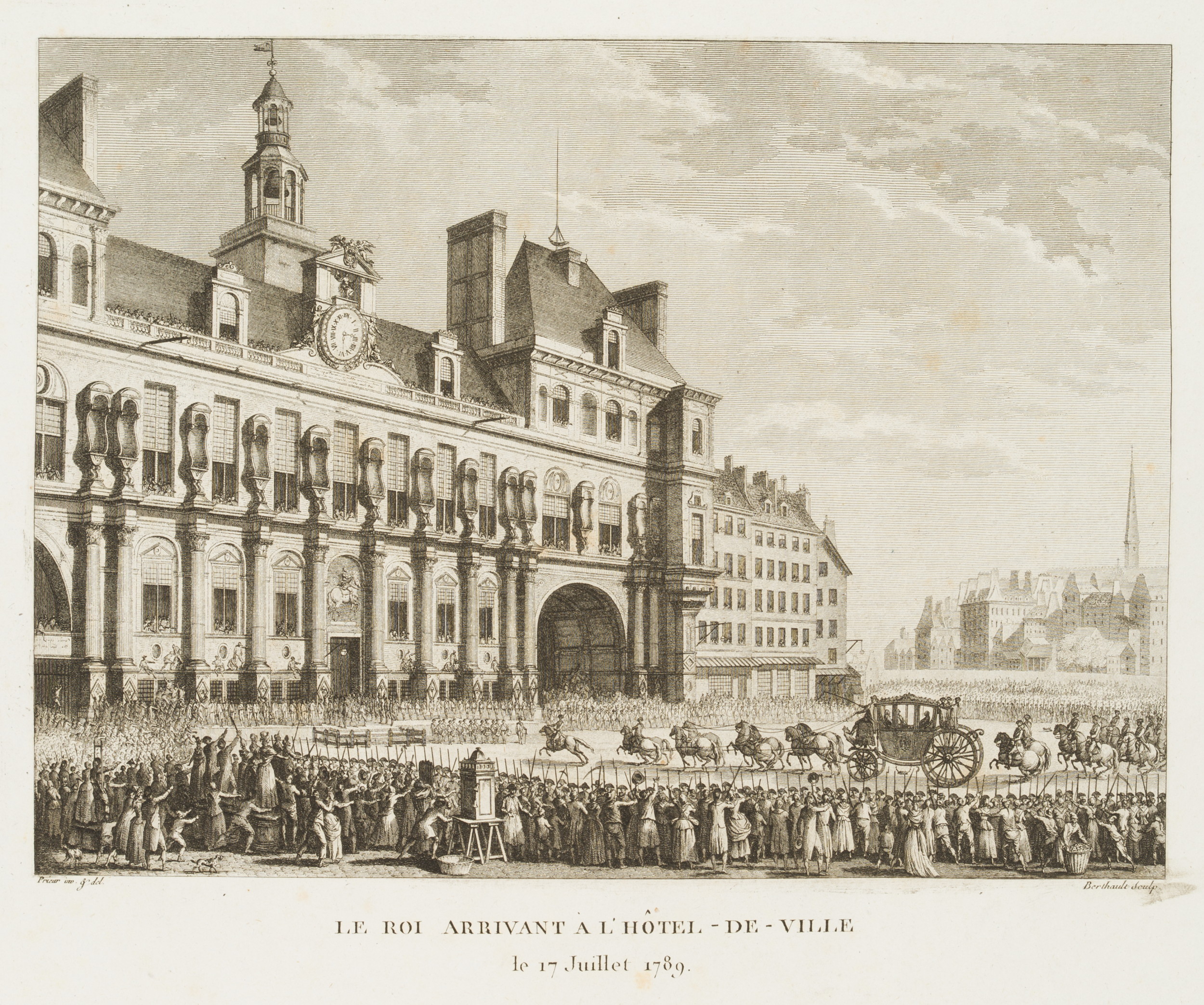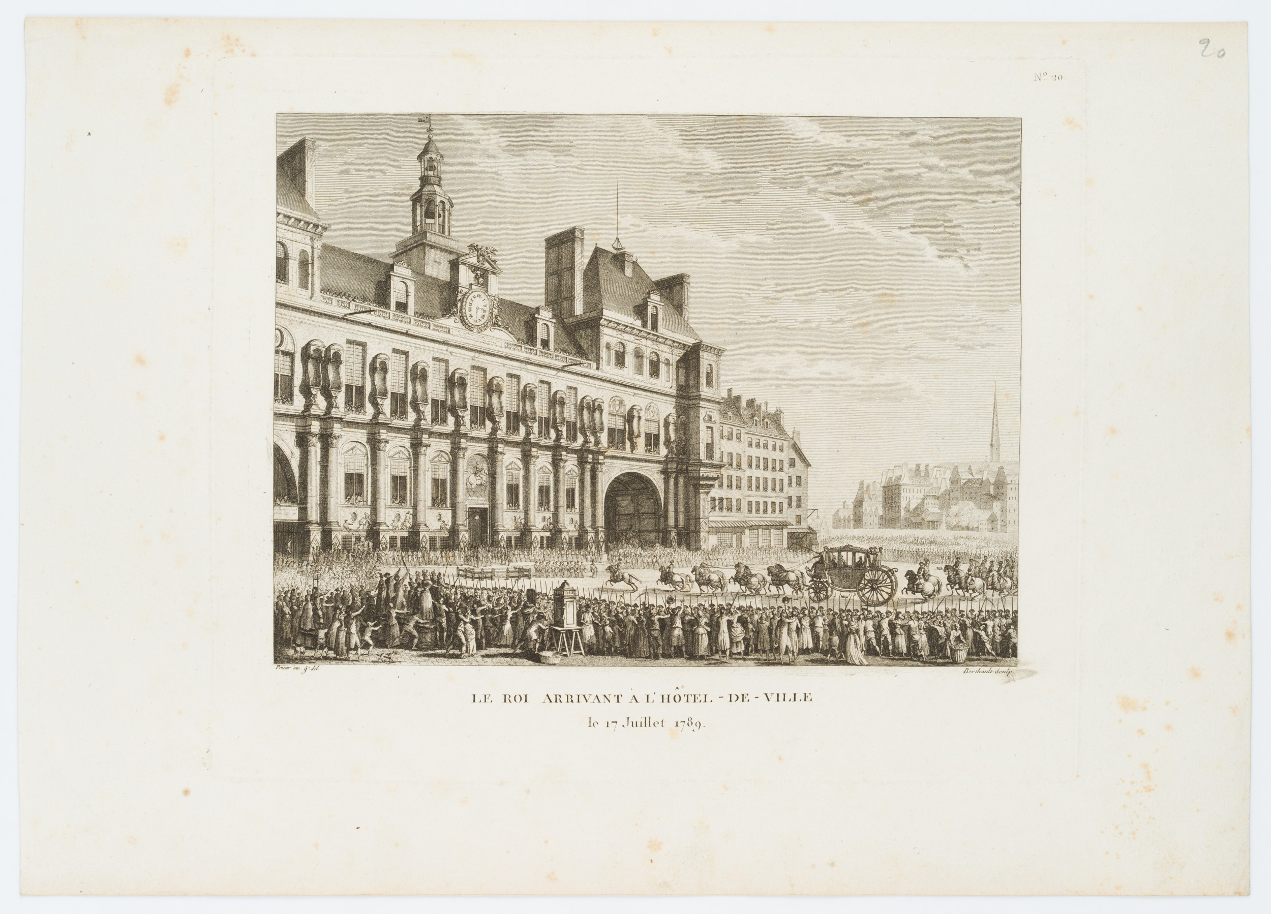 - Inscription: At the lower part signed in the printing plate: “Prieur inv. & del. | Berthault sculp.”. At the lower part inscribed in the printing plate: “Le Roi arrivant a l’Hôtel de Ville / le 17 Juillet 1789”.