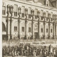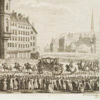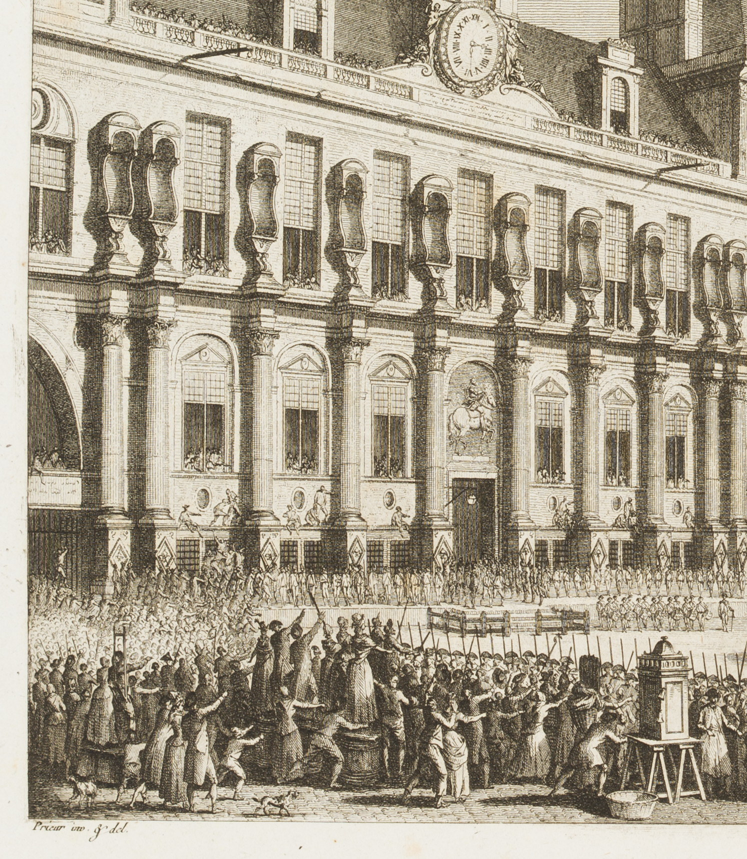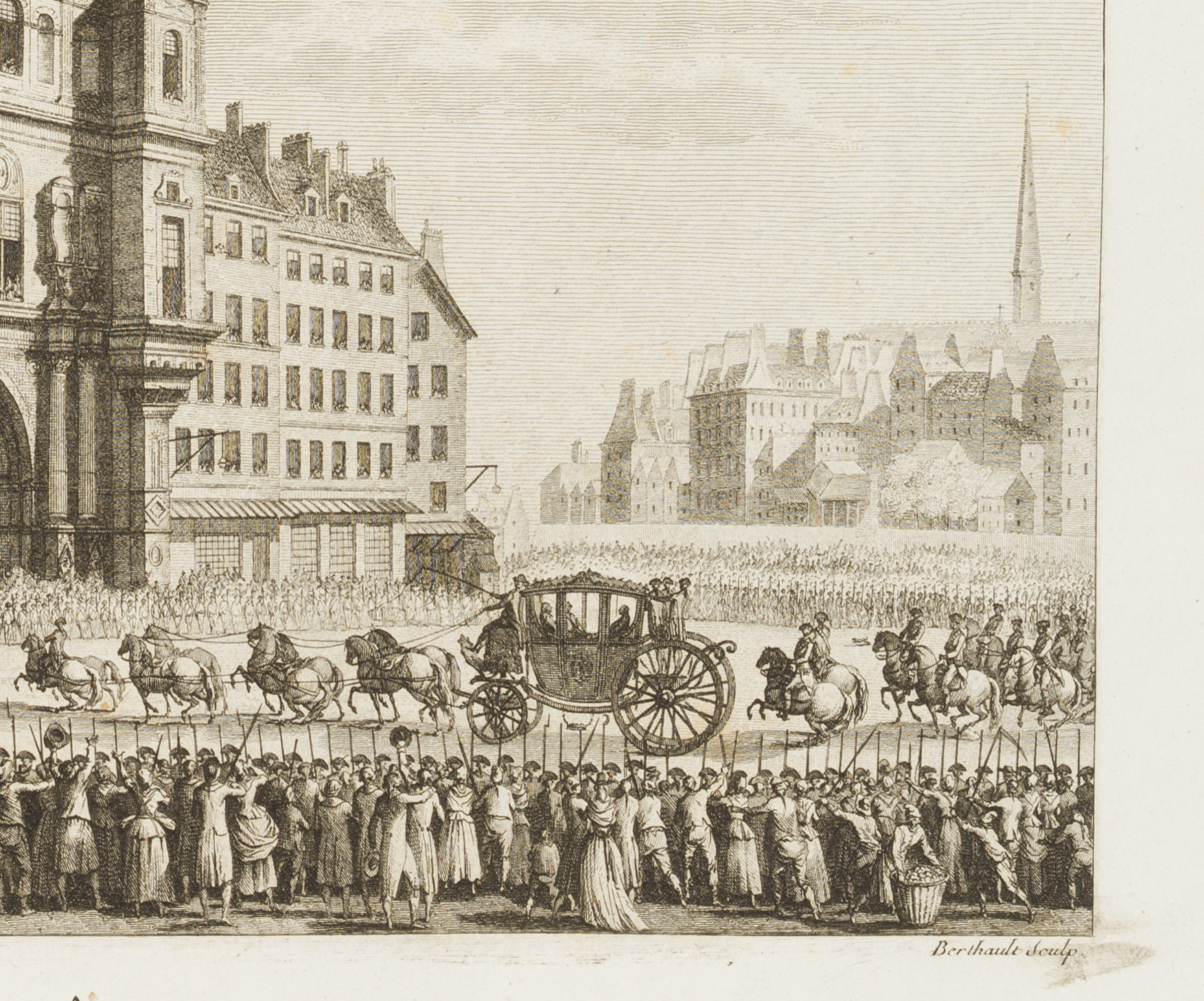 Pierre Gabriel Berthault (1737 St-Maur (Seine) – 1831 Paris) after Jean Louis Prieur (1759 Paris – 1795 ibid.), Ankunft des Königs in Paris The King arriving at the Hôtel de Ville, 1792, Etching