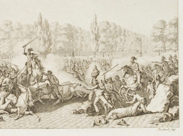 Pierre Gabriel Berthault (1737 St-Maur (Seine) – 1831 Paris) nach Jean Louis Prieur (1759 Paris – 1795 ebd.), Niederwerfung des Volks in den Tuilerien. Les Bustes de Mrs d’Orléans et Necker portés a la Place Louis XV, 1792, Radierung