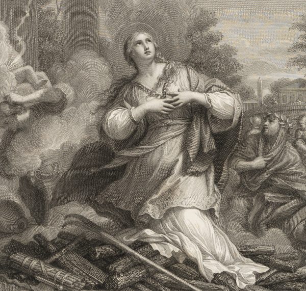 - Schlagworte: heilige Martina, Heiligendarstellung, Scheiterhaufen, Wunder, Märtyrerin, Martyrium, Religiös, Frankreich, Barock, 1800-1849