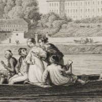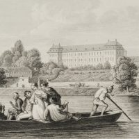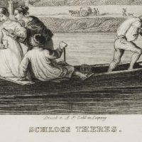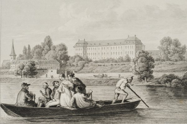 Leopold Beyer (1789 – 1877 ) nach Ludwig Richter (1803 Dresden – 1884 ebd.), Bootspartie auf dem Main vor Schloss Theres, um 1850, Stahlstich
