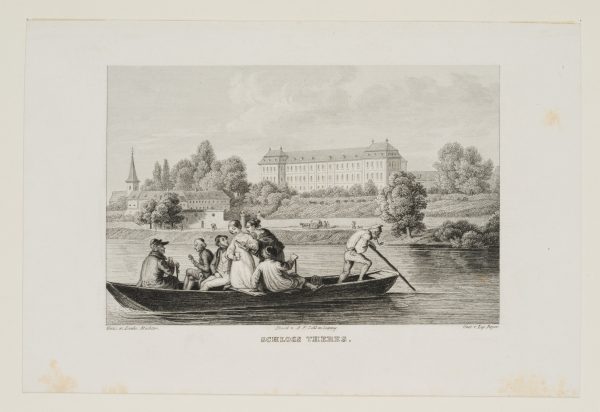 • Schlagworte: Schloss Theres, Obertheres, Unterfranken, Main, Haßberge, Vedute, Bootspartie, Nachen, Kahn, Boot, Landschaft, Deutschland, Romantik, 1850-1899