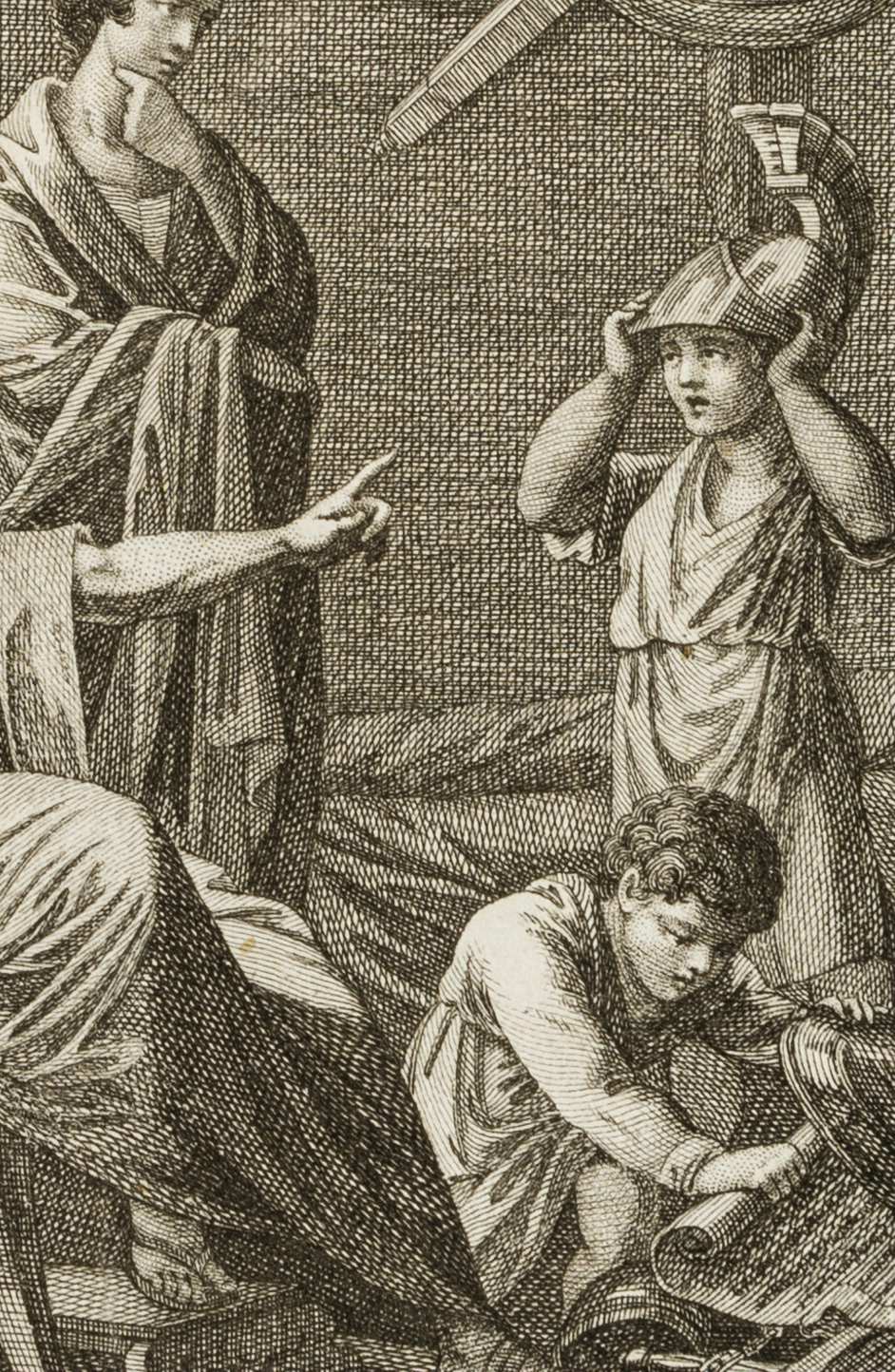 János Blaschke (1770 Pozsony – 1833 Wien) nach Friedrich Matthäi (1777 Meißen – 1845 Wien), Junge Krieger und Poeten, 18. Jahrhundert, Kupferstich