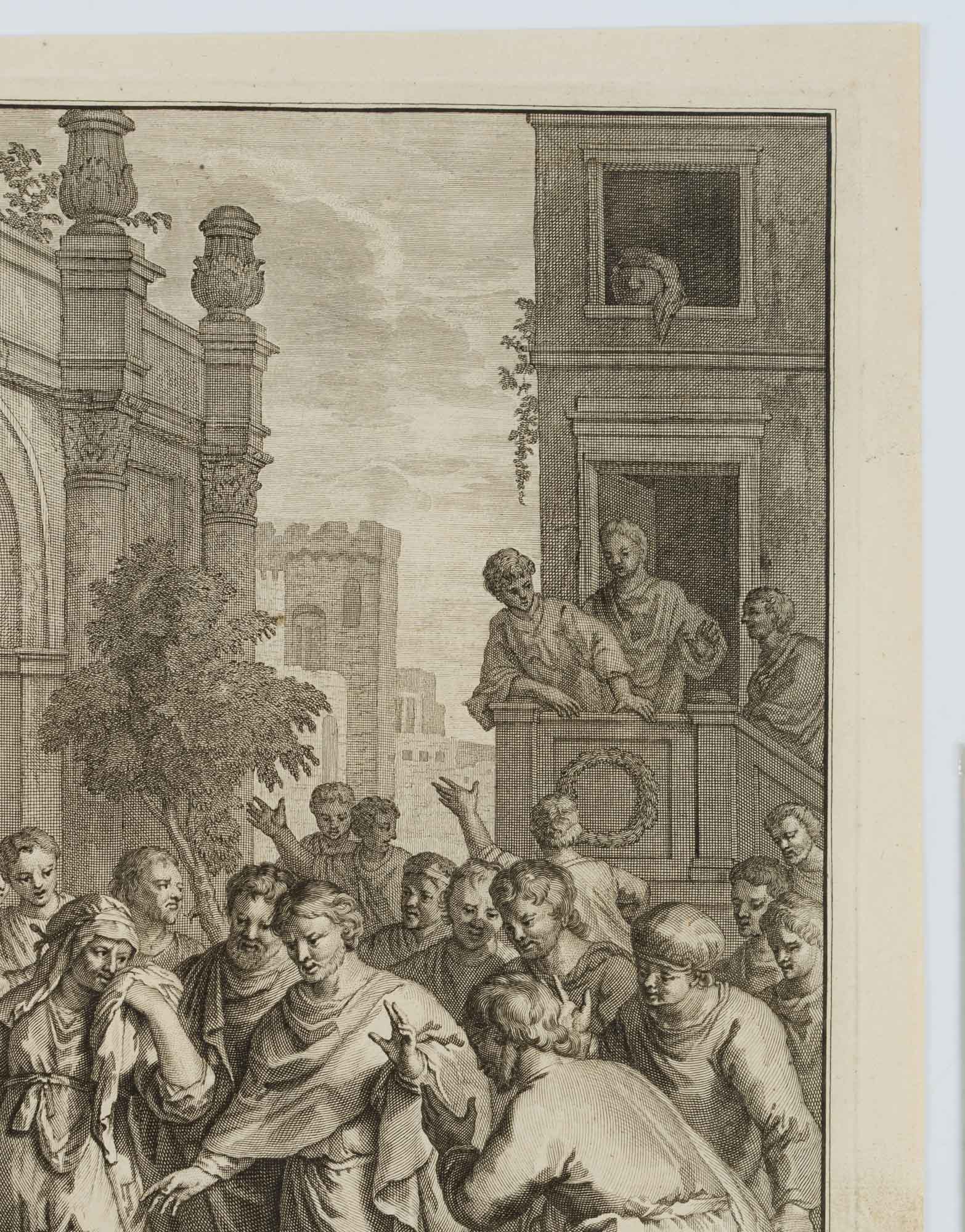 Abraham de Blois (1679 Delft – 1717 Amsterdam) nach Gerard Hoet (1648 Zaltbommel – 1733 Den Haag), Ruth mit ihrer Schwiegermutter, um 1700, Kupferstich