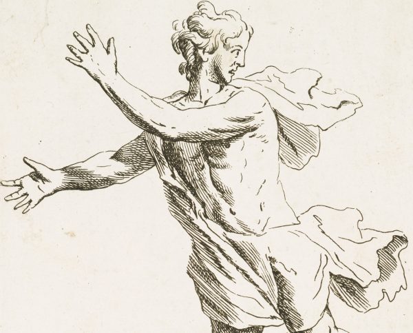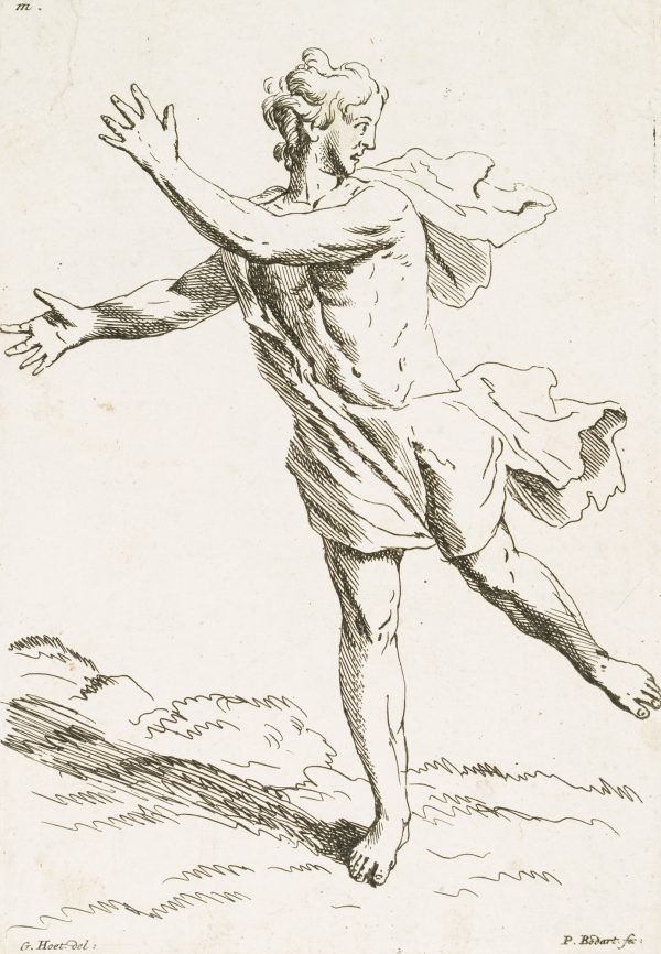 Pieter Bodart (1676 Utrecht – 1712 Leiden) after Gerard Hoet (1648 Zaltbommel – 1733 The Hague), Figure study, Young man on the run, c. 1700, Etching