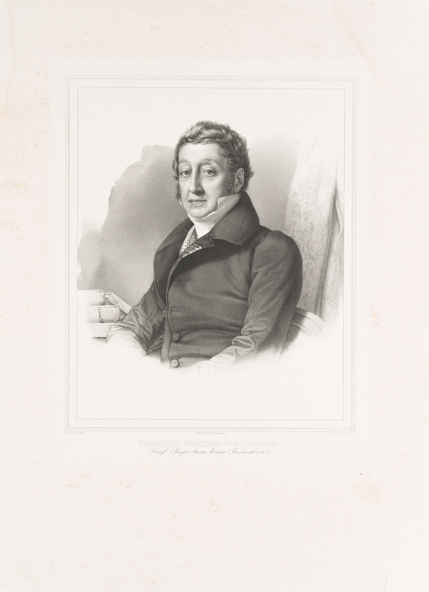 - Description: Portrait of the German jurist and Bavarian statesman Georg Friedrich von ZENTNER, who was Bavarian Minister of Justice from 1823-1831. Sitting in an armchair, he looks attentively at the viewers with raised eyebrows. Next to him several books can be seen, which probably refer to his profession as a lawyer.