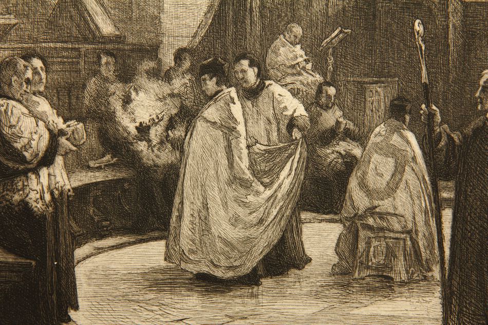 Friedrich Böttcher (1844 Berlin – nach 1916 ) nach Ferdinand Laufberger (1829 – 1881 ebd.), Kirchliche Zeremonie, 19. Jahrhundert, Radierung