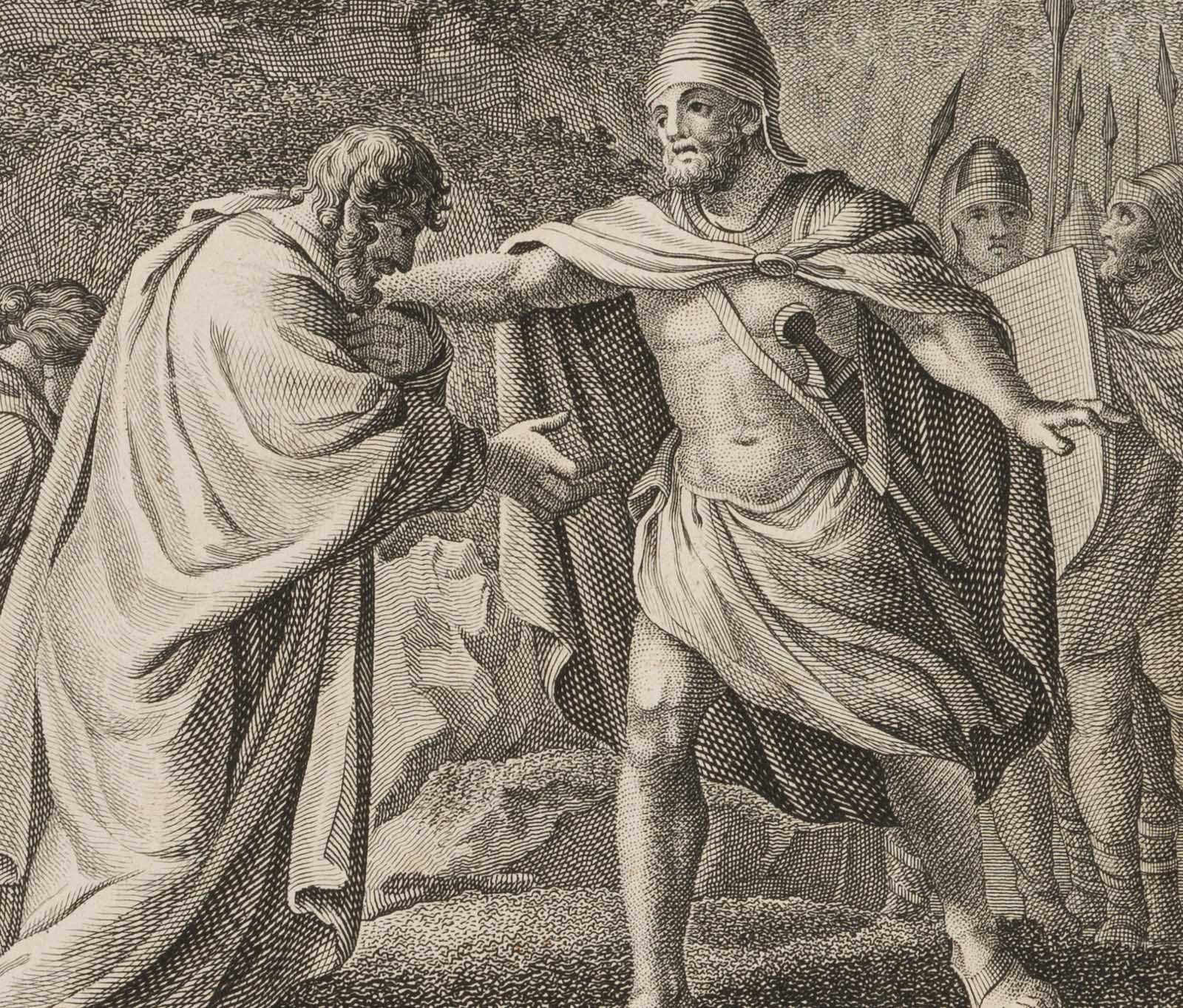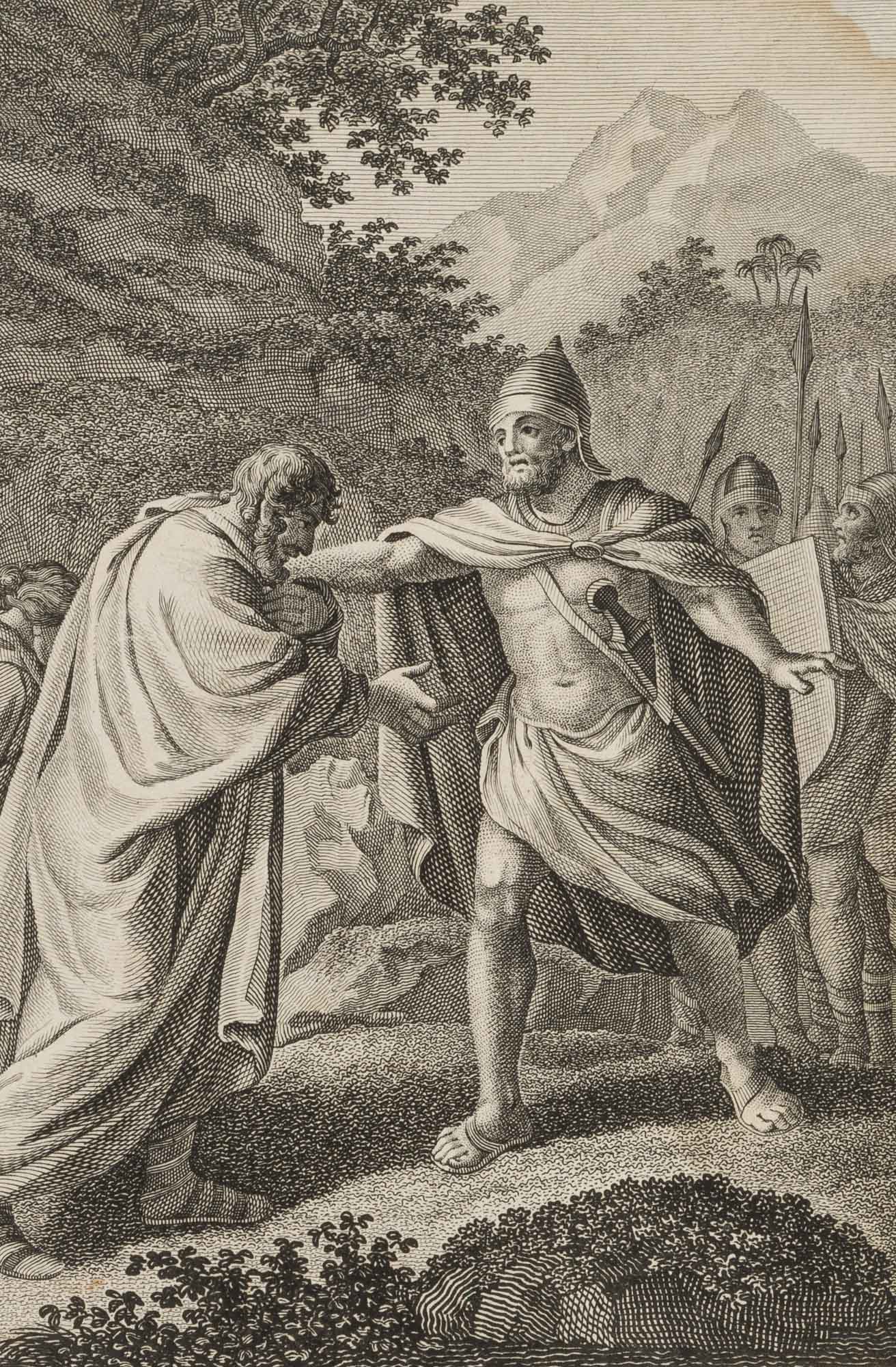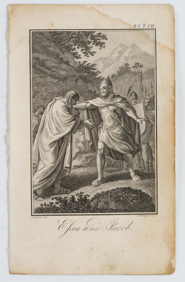 Gottlieb Boettger d. Ä. (*um 1796 ) nach Johann David Schubert (1761 Dresden – um 1822 ebd.), Bibelillustration. Esau und Jacob, Buch Moses, 19. Jahrhundert, Kupferstich