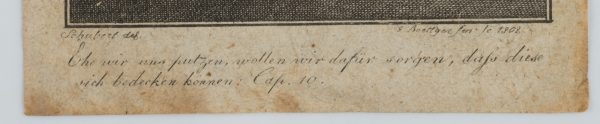 - Inscription: Signed on the lower left “Schubert del.” and on the right signed and dated “G Boettger [?] sc 1808”. Below a quotation from the short story.