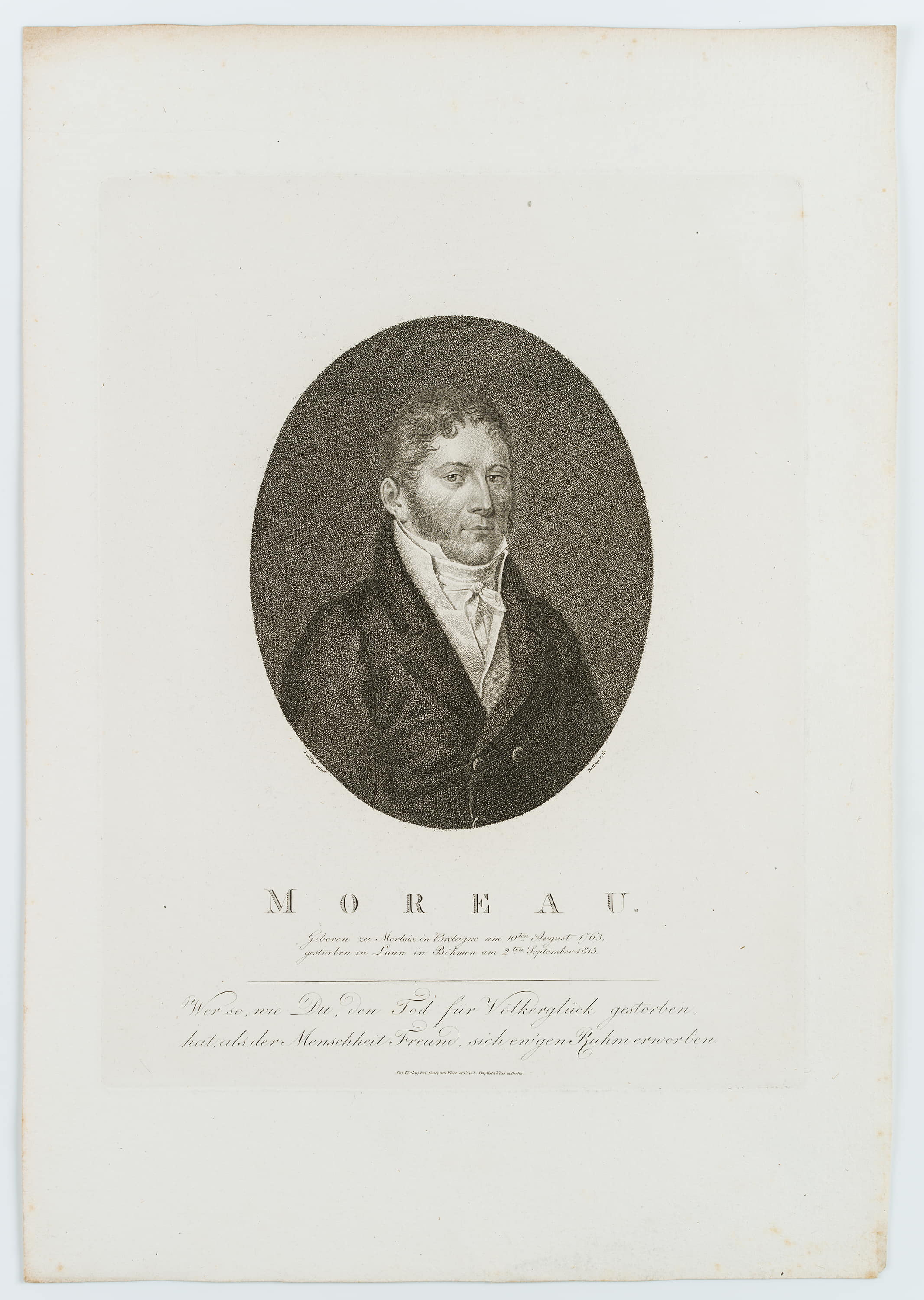 - Description: The portrait shows the general Jean-Victor Moreau, who was general of the French army until Napoleon Bonaparte’s coronation as emperor. Napoleon had him exiled in 1804, and in 1813 he returned to Europe to fight against Napoleon under Tsar Alexander I as his adjudant general. In the same year he succumbed to an injury sustained during the Battle of Dresden.
