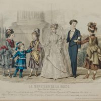 The fashion is modelled in the Parisian fashion publication in naturalistic living rooms or outdoors by women representing everyday activities of the bourgeoisie. The chic dresses are complemented by hats and hairstyles. At the bottom are the names and addresses of the fashion houses that produced or sold the garments and accessories depicted. These sheets are a historical treasure, documenting the fashionable influence France had on the 19th century. - Source: Le Moniteur de la Mode | Magazine, Genre
