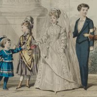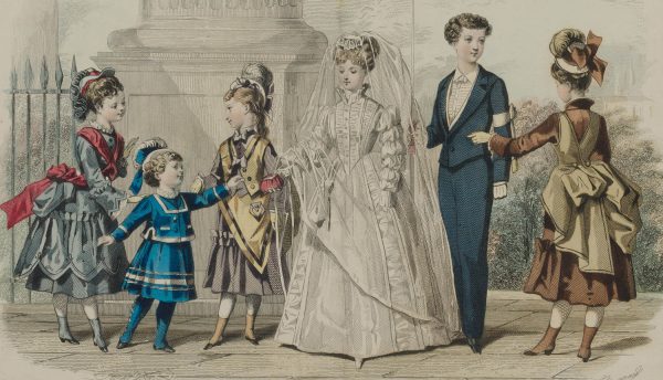 - Schlagworte: Brautmode, Braut, Bräutigam, Festtagskleidung, Kleiderordnung, Pariser Eleganz, Pariser Mode, Modemagazin, Mode, Genre, Frankreich, Biedermeier, 1850-1899