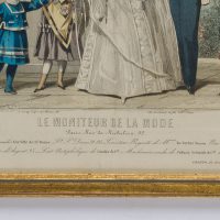 Die Mode wird in der Pariser Modepublikation in naturalistischen Wohnzimmern oder im Freien von Frauen modelliert, die alltägliche Aktivitäten der Bourgeoisie darstellen. Die schicken Kleider werden durch Hüte und Frisuren ergänzt. Am unteren Rand stehen die Namen und Adressen der Modehäuser, die die abgebildeten Kleidungsstücke und Accessoires produzierten oder verkauften. Diese Blätter sind ein historisches Kulturgut, die dokumentieren, welchen modischen Einfluss Frankreich auf das 19. Jahrhundert nahm. - Quelle: Le Moniteur de la Mode | Zeitschrift, Genre