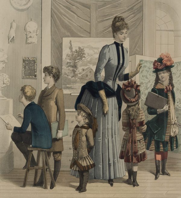 - Schlagworte: Alltagskleidung, Garderobe, Kindermode, Damenmode, Kleiderordnung, Museum, Ausstellung, Kunstunterricht, Lehrerin, Pariser Mode, Pariser Eleganz, Mode, Genre, Frankreich, Biedermeier, 1850-1899