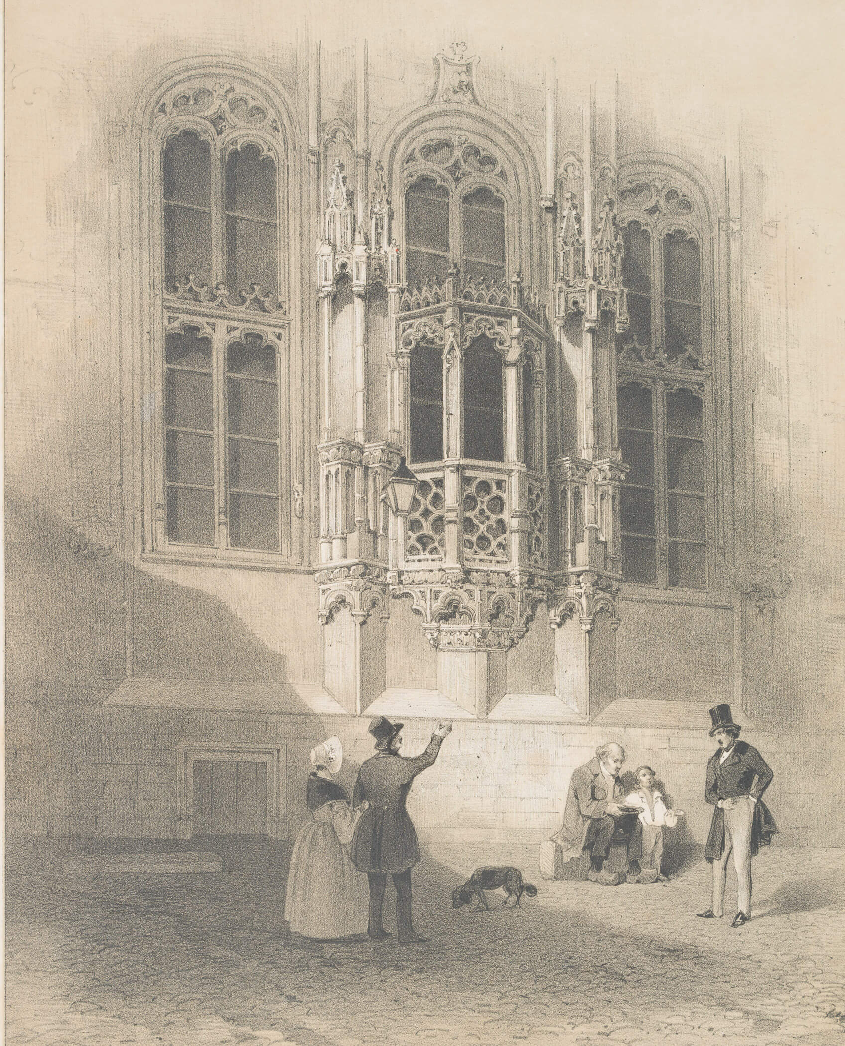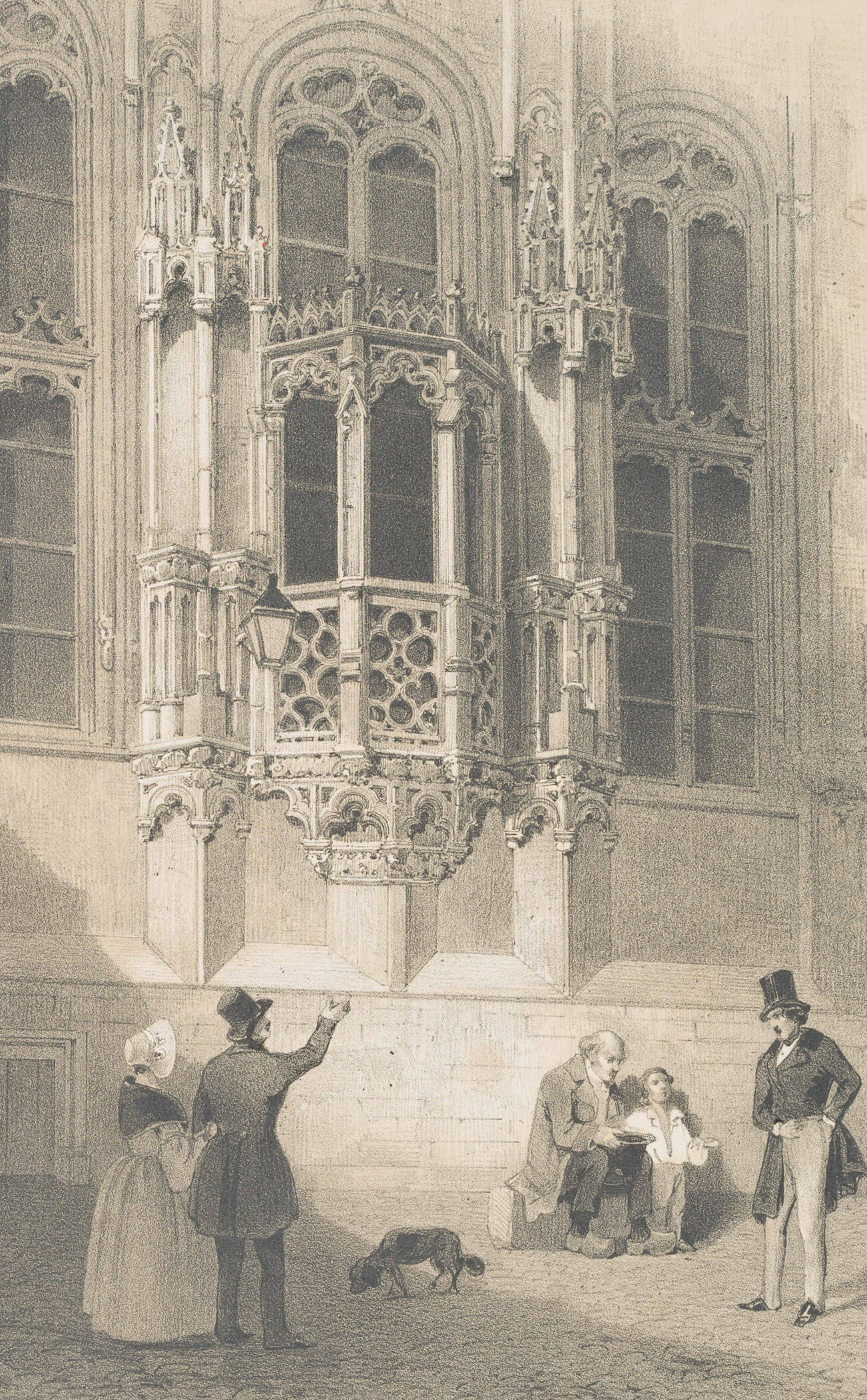 Henri Borremans (um 1800 Brüssel – nach 1858 ) nach Chemar (19. Jahrhundert), Außenfassade ‘Balcon de l’hôtel de ville de Gant’, um 1870, Lithographie
