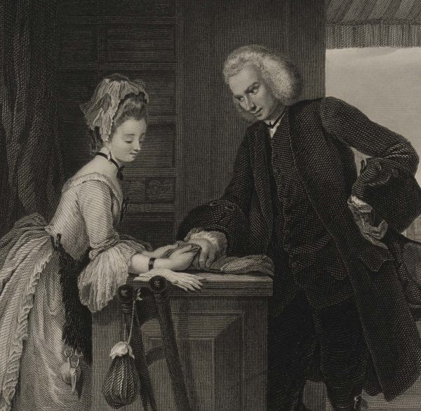 Herbert Bourne (*um 1820 ) nach Gilbert Stuart Newton (1795 Halifax – 1835 Wimbledon), Yorik et la Grisette, Illustration zu “A Sentimental Journey” von Laurence Stern, um 1860, Stahlstich