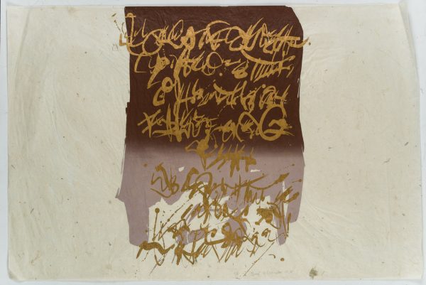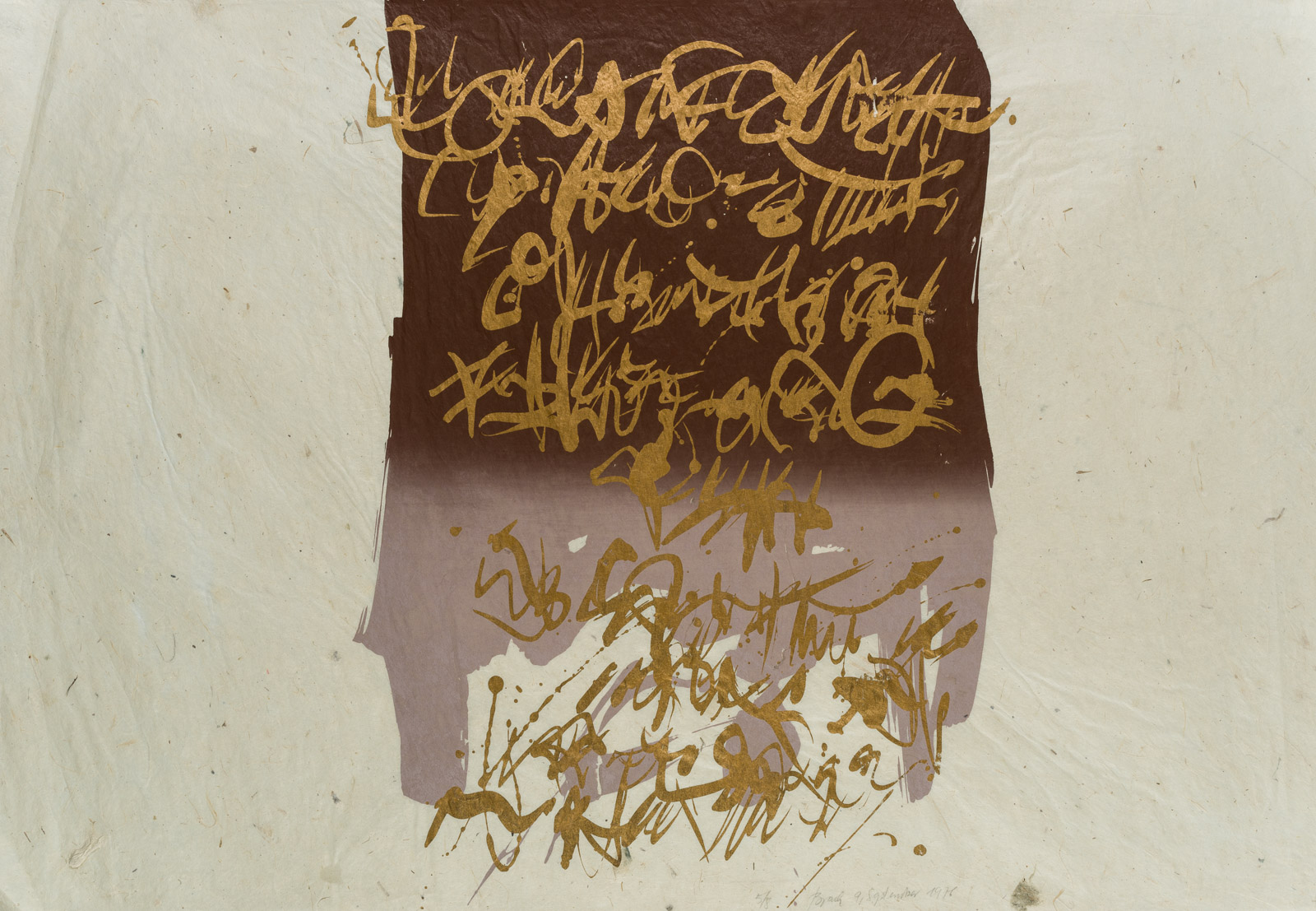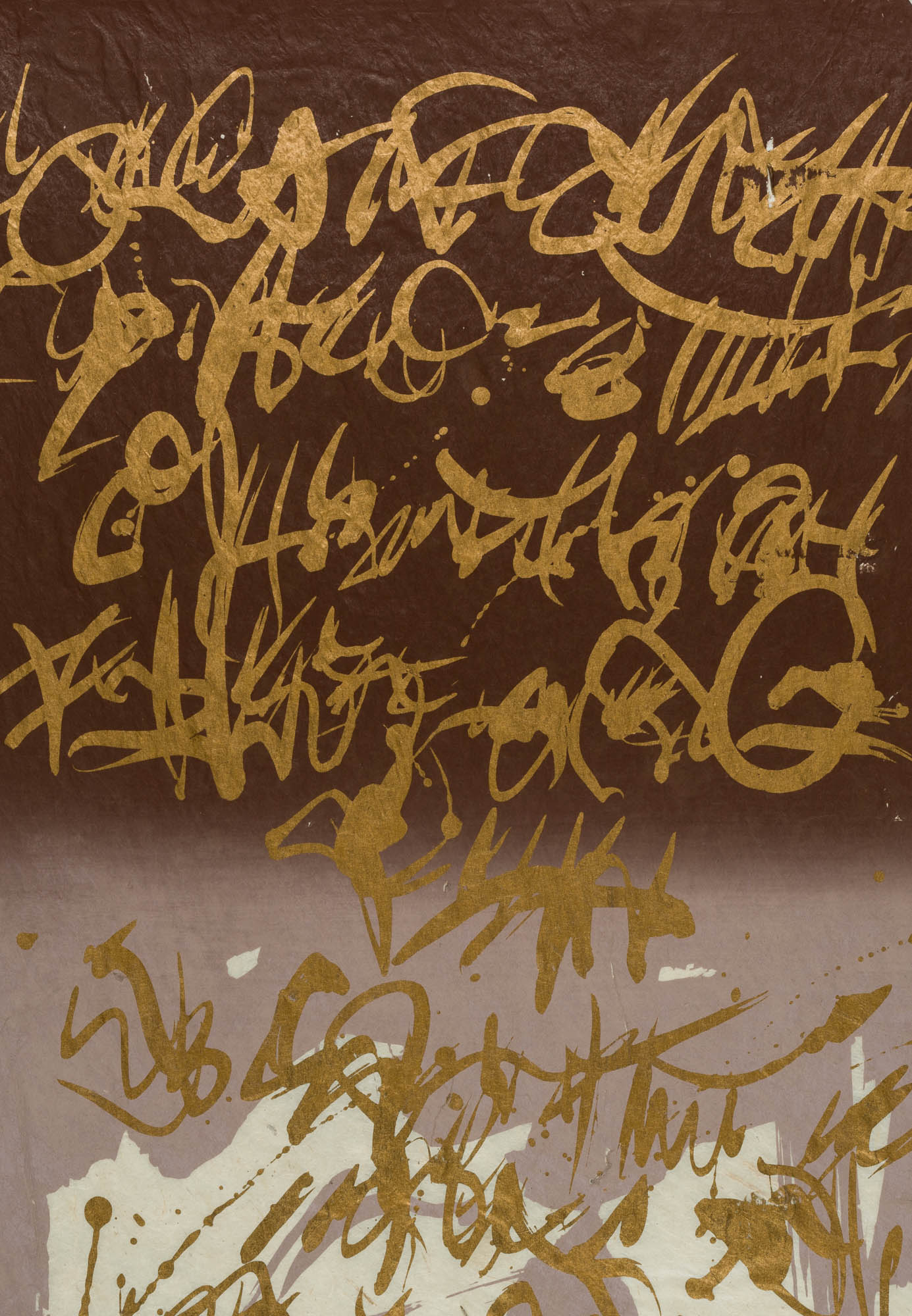Brach (20th century), Abstraction Lettering of expressive brushstrokes on a brown coloured surface, 1976, Brush drawing
