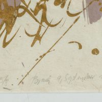 - Description: In terms of the painting process, Brach seems to have been guided here by Jackson Pollock’s drip-painting method of the 1940s. Drip painting is an unconventional method in which paint is applied to the canvas in rhythmic movements. Numbered, signed and dated in the centre below the painting: “5/8 Brach 9 September 1971”.