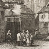 R Brice (19th century) after George Sidney Shepherd (19th century), Scene in an alley in Oberursel near St Ursula’s Church, 19th century, Steel engraving