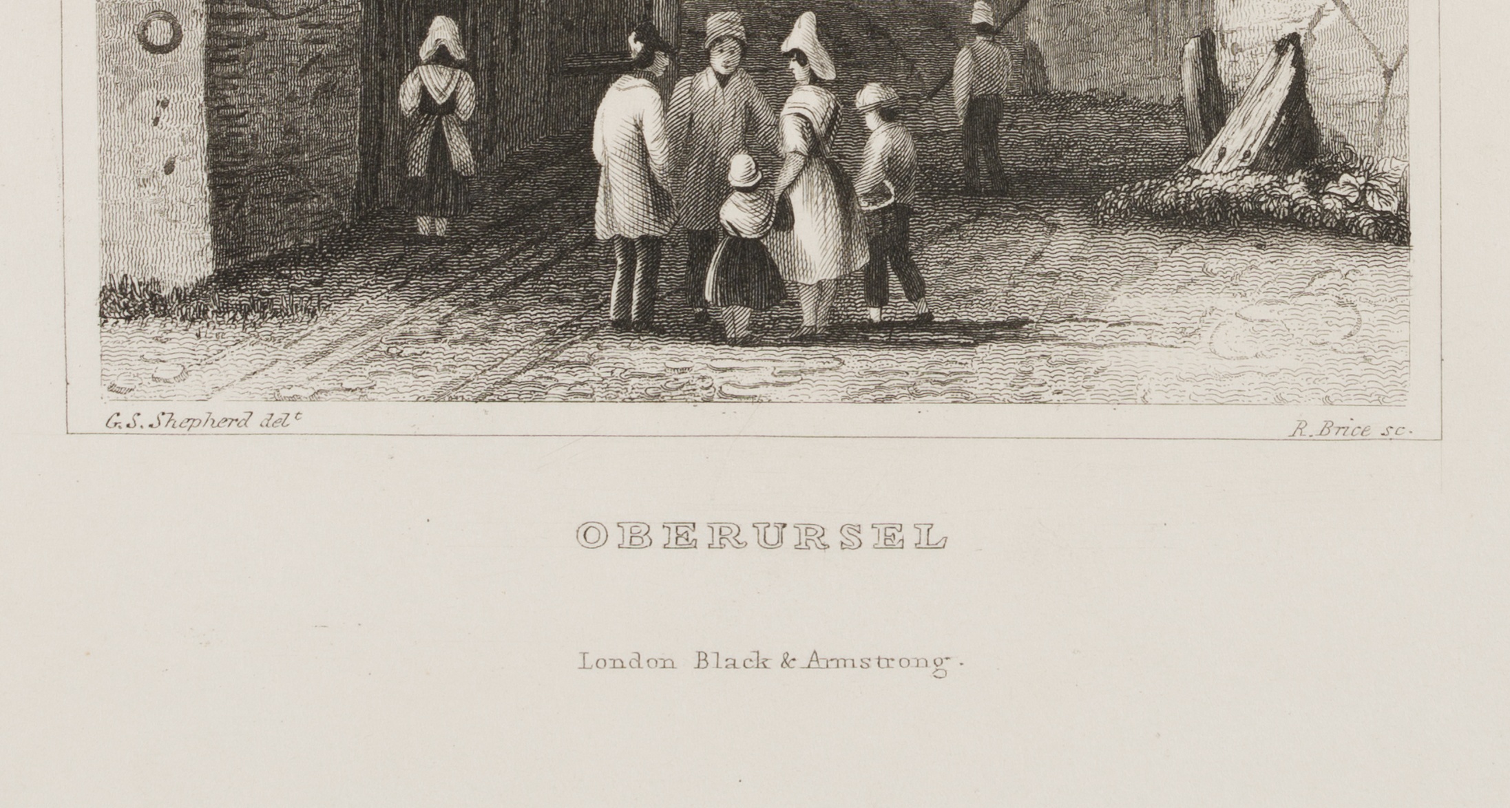 - Inscription: At the lower part signed in the printing plate: “G. S. Shepherd delt | R. Brice sc.”. At the lower part inscribed in the printing plate: “Oberursel”.