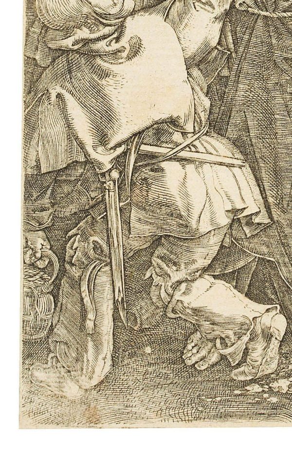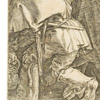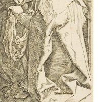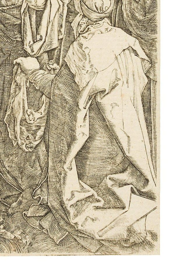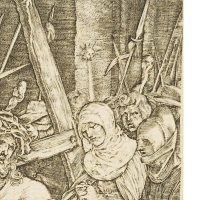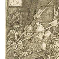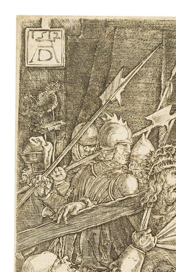 - Beschreibung: Gegenseitige Kopie mit Monogramm und Jahreszahl Dürers. Oben links bezeichnet mit “AD” und “1512”. Die Darstellung entspricht Blatt 10 aus Dürers Kupferstich-Passion, die zwischen 1507 und 1512 entstanden ist. Die Kopie gehört zu den Nachdrucken des Bamberger Antiquars Bundele, die insgesamt eine hohe Genauigkeit aufweisen. Ältere dieser Abdrucke gelten als sehr selten.
